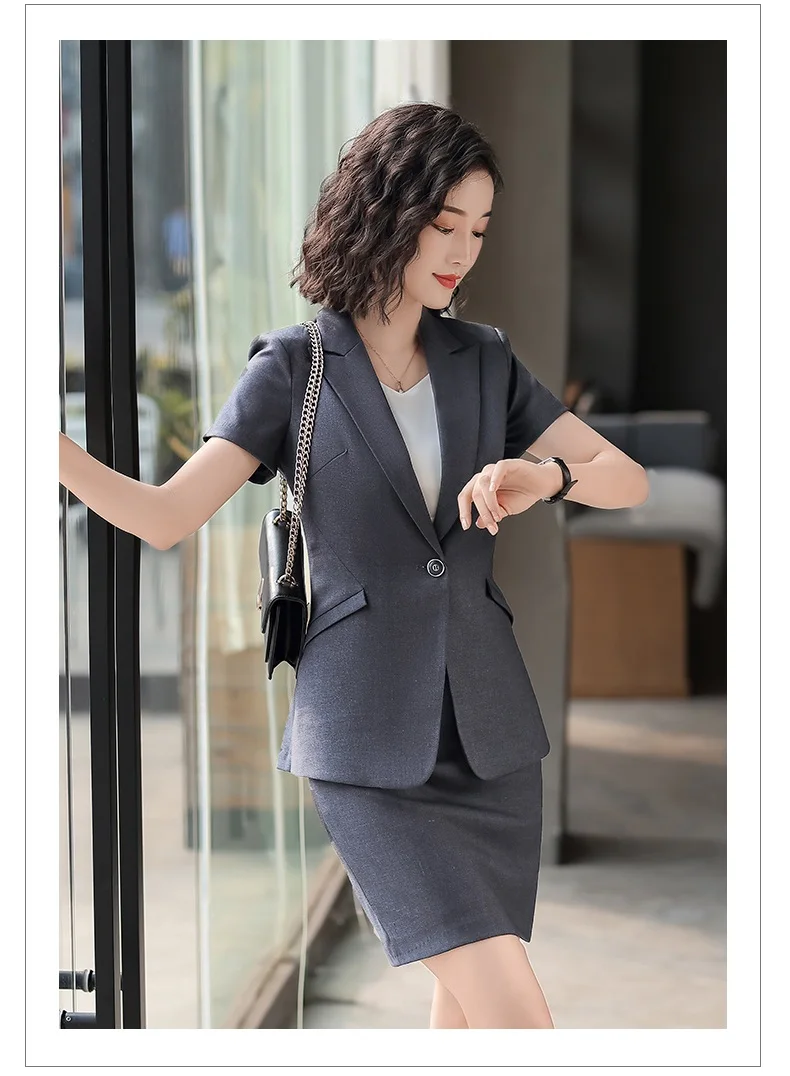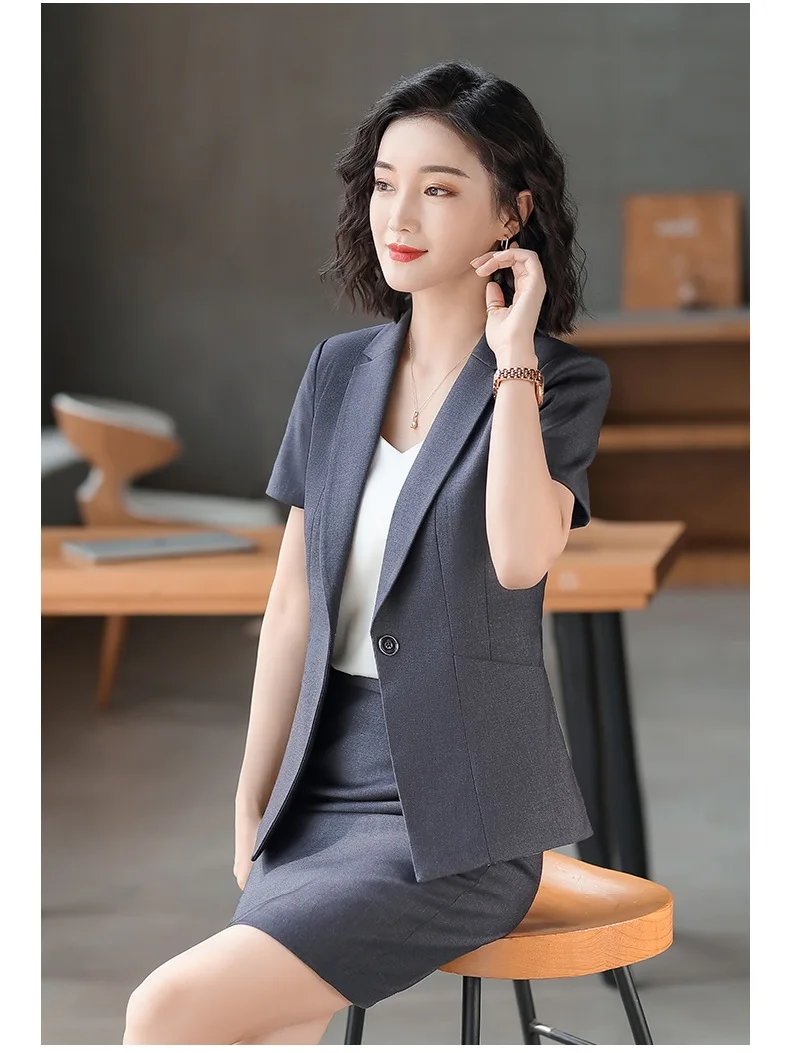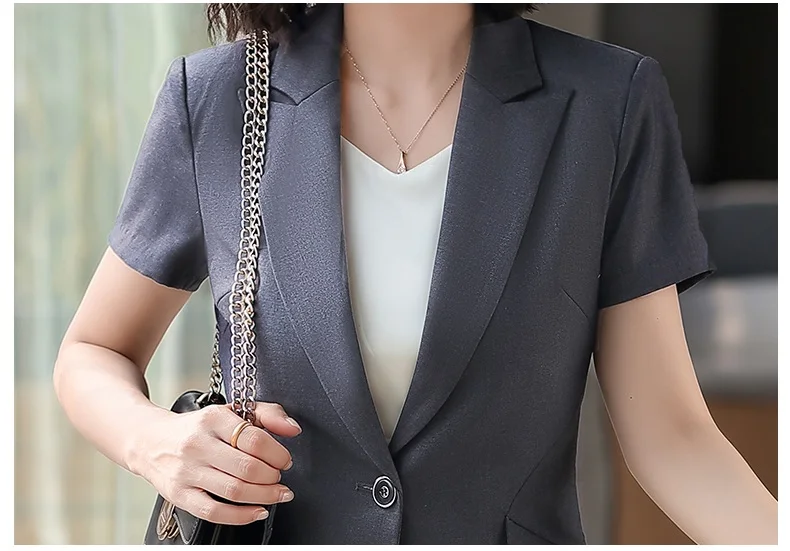 | 2020 Female Elegant Formal Office Work Wear New 2020 Grey Blazer Women Jackets Short Sleeve Slim Office Ladies Clothes OL Styles |