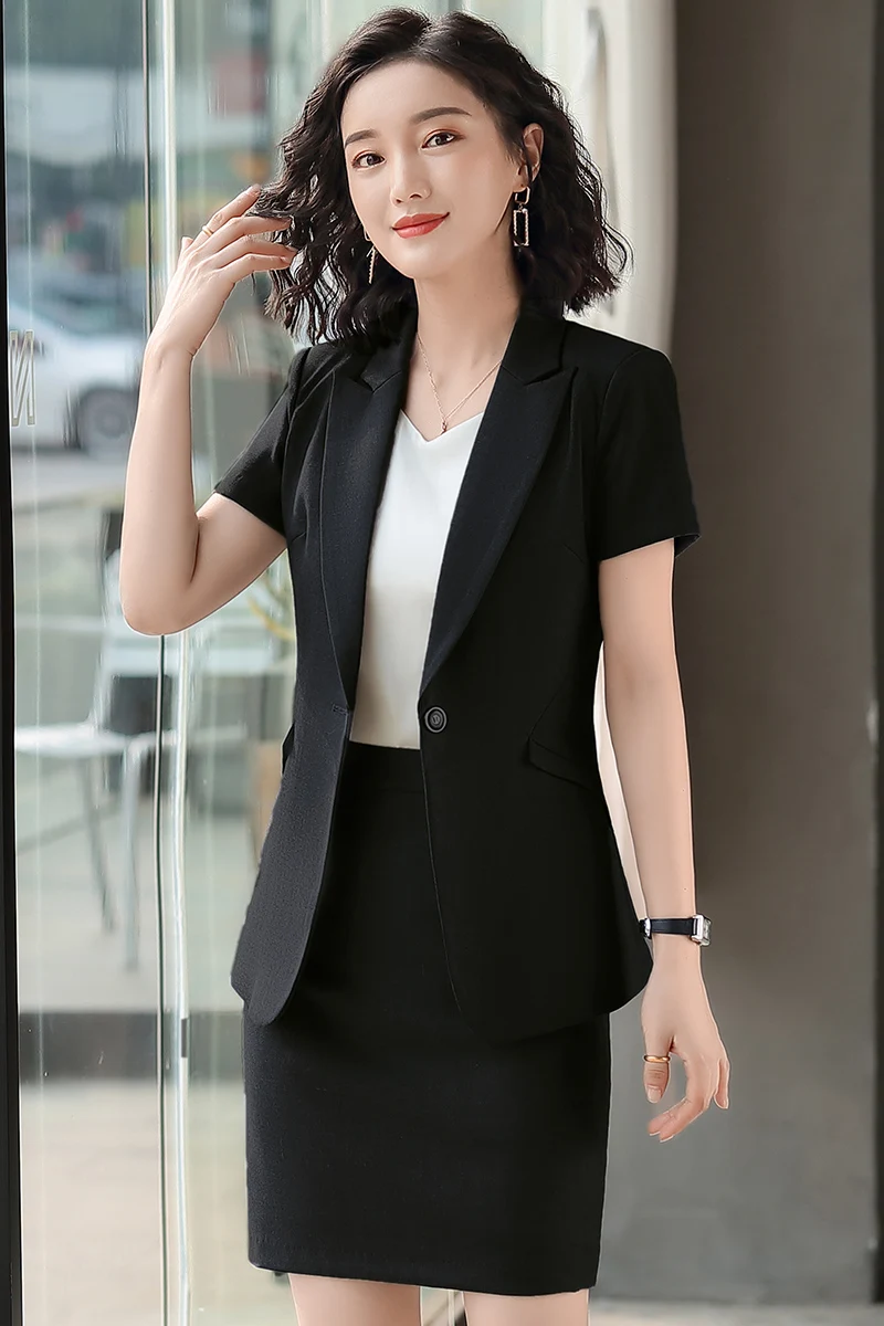 Best Price Comparison With 2020 Female Elegant Formal Office Work Wear New 2020 Grey Blazer Women Jackets Short Sleeve Slim Office Ladies Clothes OL Styles