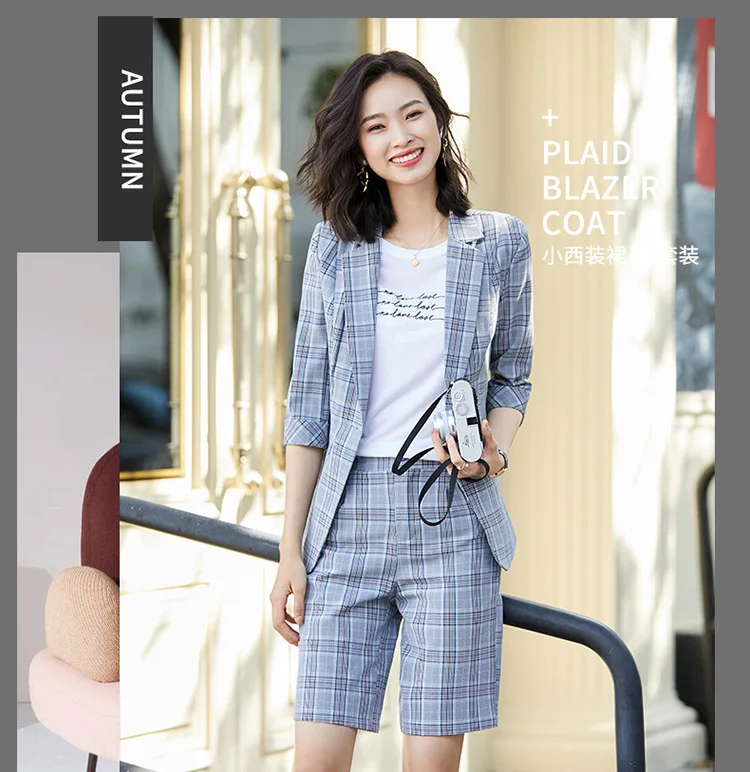 | 2020 Summer Autumn Plaid Short Pant Suits Women Office Business Suits Uniform Styles Elegant Plaid Pant Formal Work Wear Sets |
