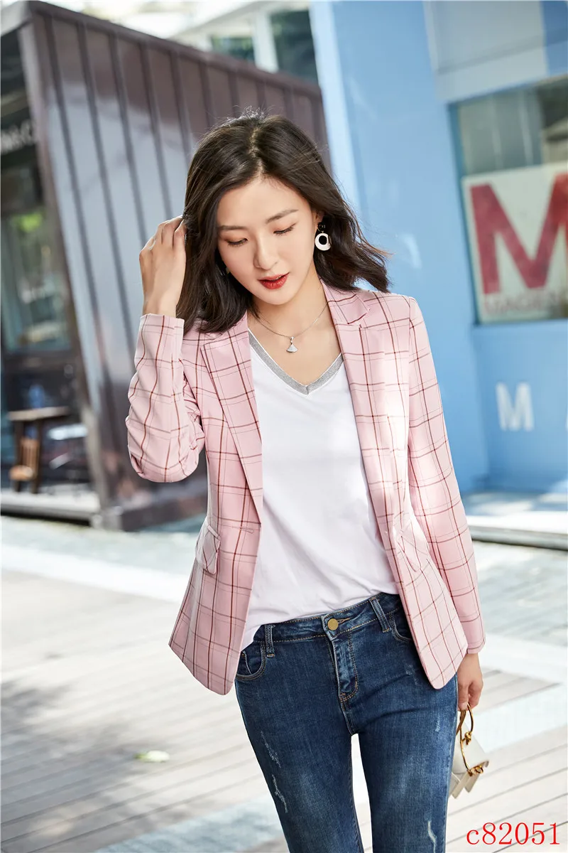 Best Price Comparison With Fashion Casual Laides Pink Blazer Women Outerwear Jackets Female Elegant Formal Office Work Wear OL Styles Blazers and Jackets