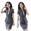 | Female Elegant Formal Office Work Wear Ladies Grey Blazer Women Business Suits with Skirt and Jacket Sets OL Styles 2 Piece Set |