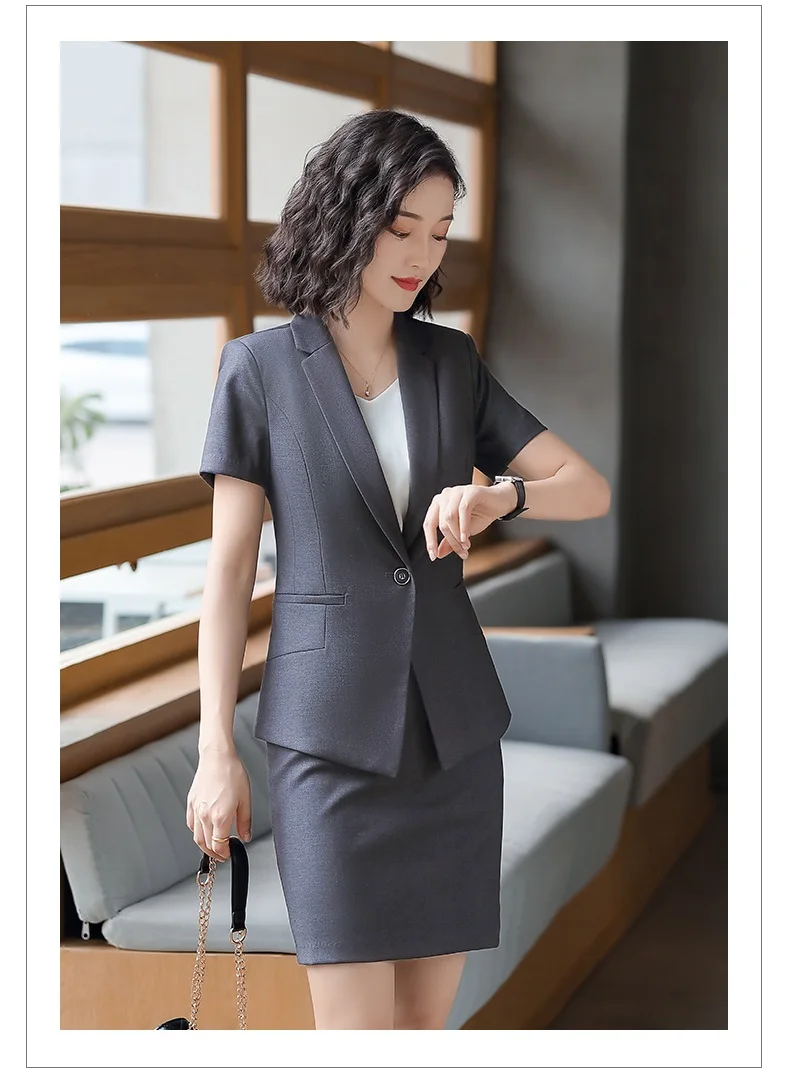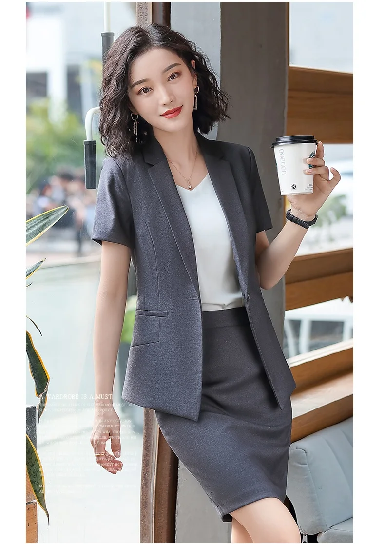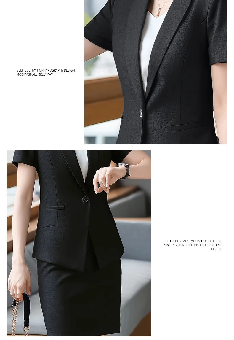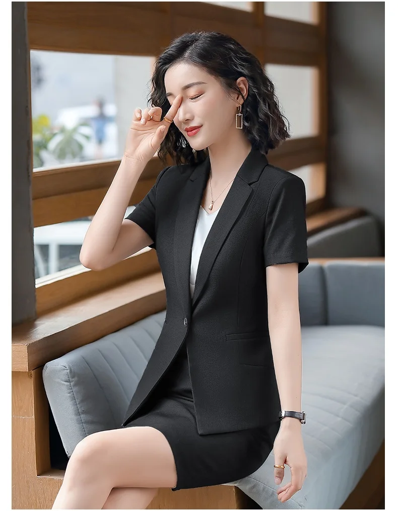 | Female Elegant Formal Office Work Wear Summer Black Blazer Women Business Suits with Skirt and Jacket Sets Ladies Clothes Styles |