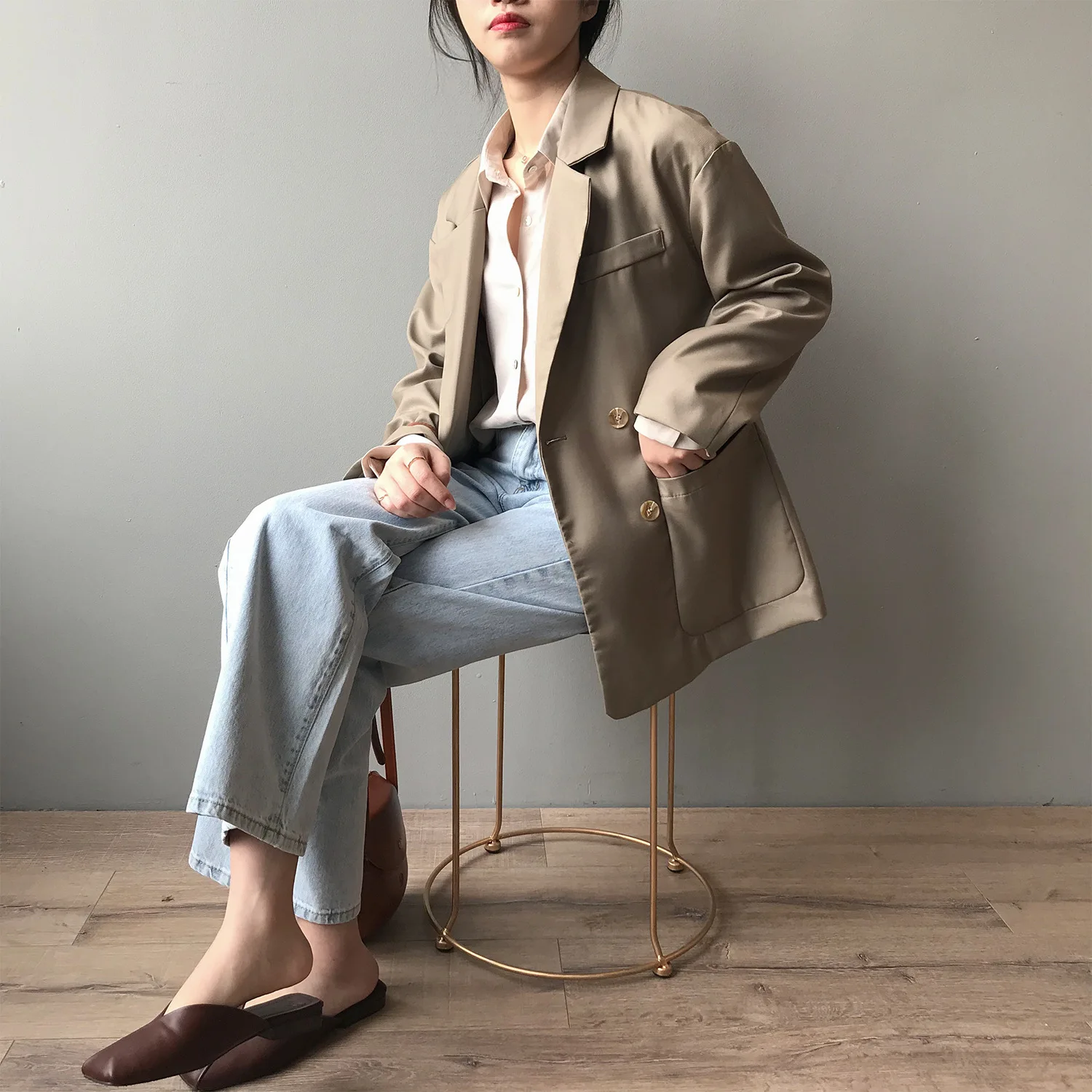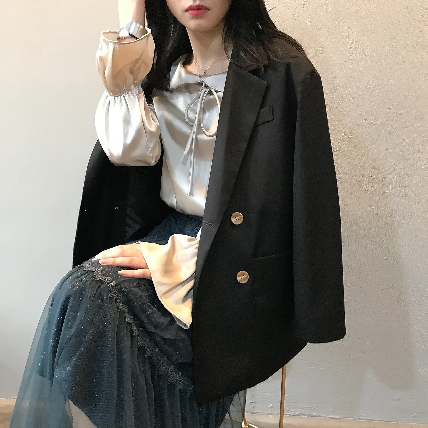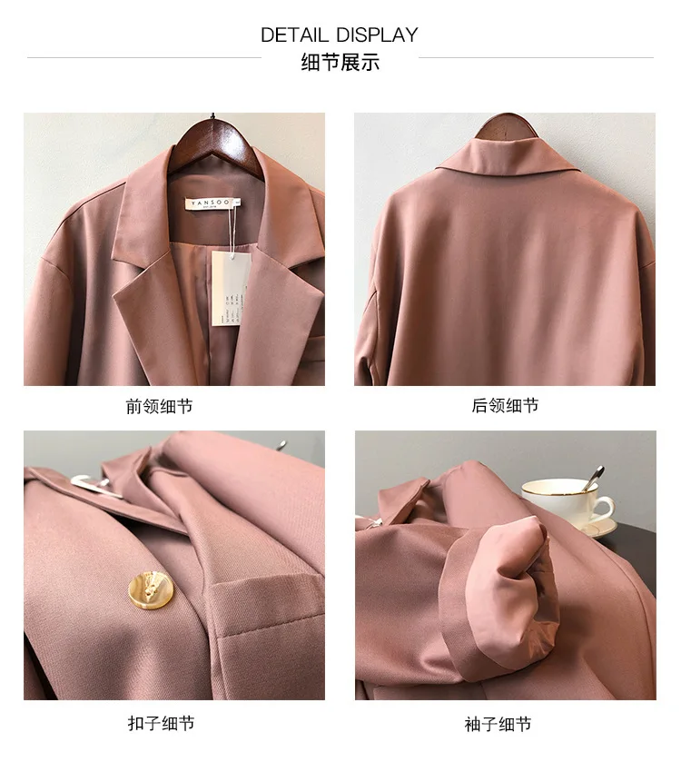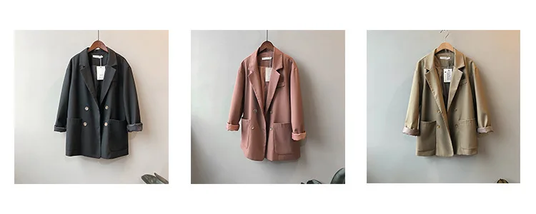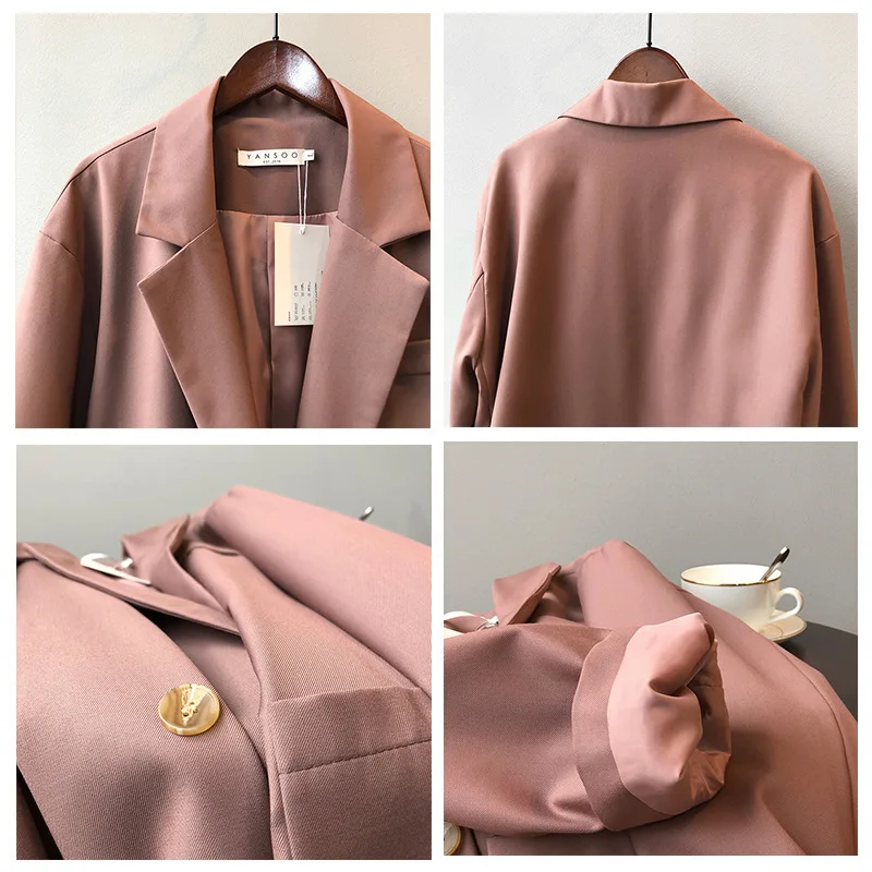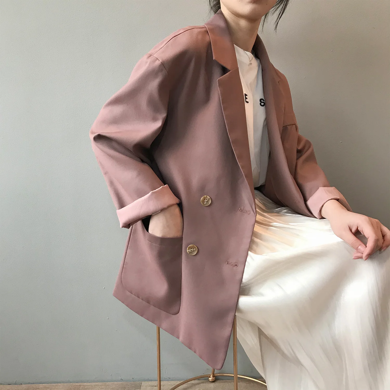 | Sweet Pink Suit Jackets Women 2020 Spring Lapel Blazers Long Sleeve Double-breasted Suit Coat Pocket Loose Casual Blazer Suits |
