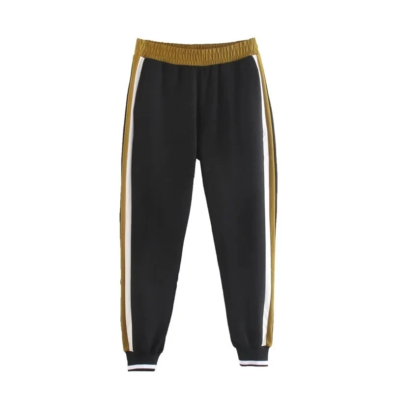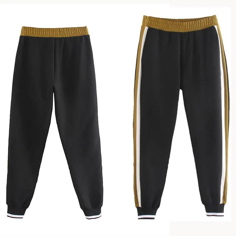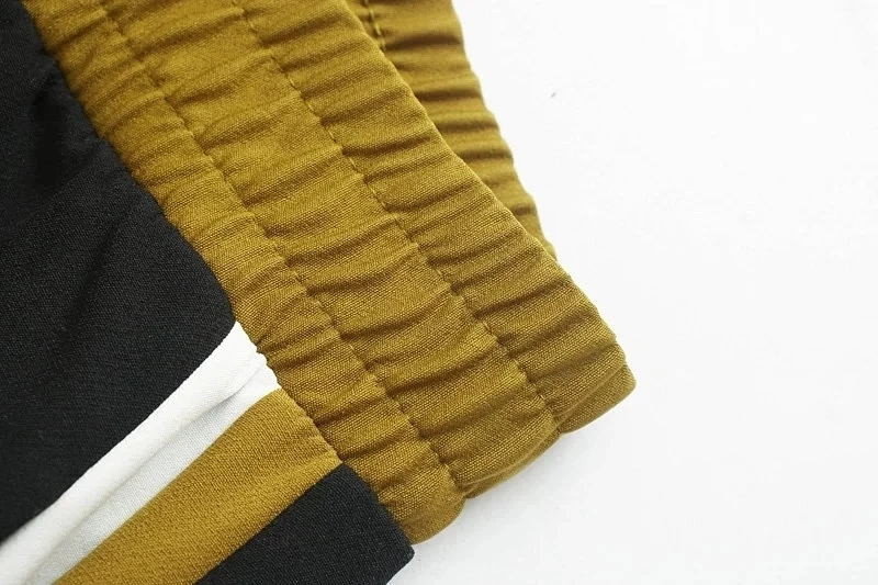 2019 Set Female Vintage Contrast Color Baseball Bomber Pullover Jacket Women Tops and Pencil Jogging Pants Suits Two Piece Sets