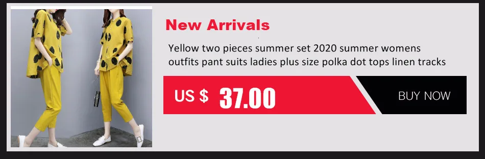 Yellow two pieces summer set 2020 summer womens outfits pant suits ladies plus size polka dot tops linen tracksuit clothingBuy Now On Aliexpress