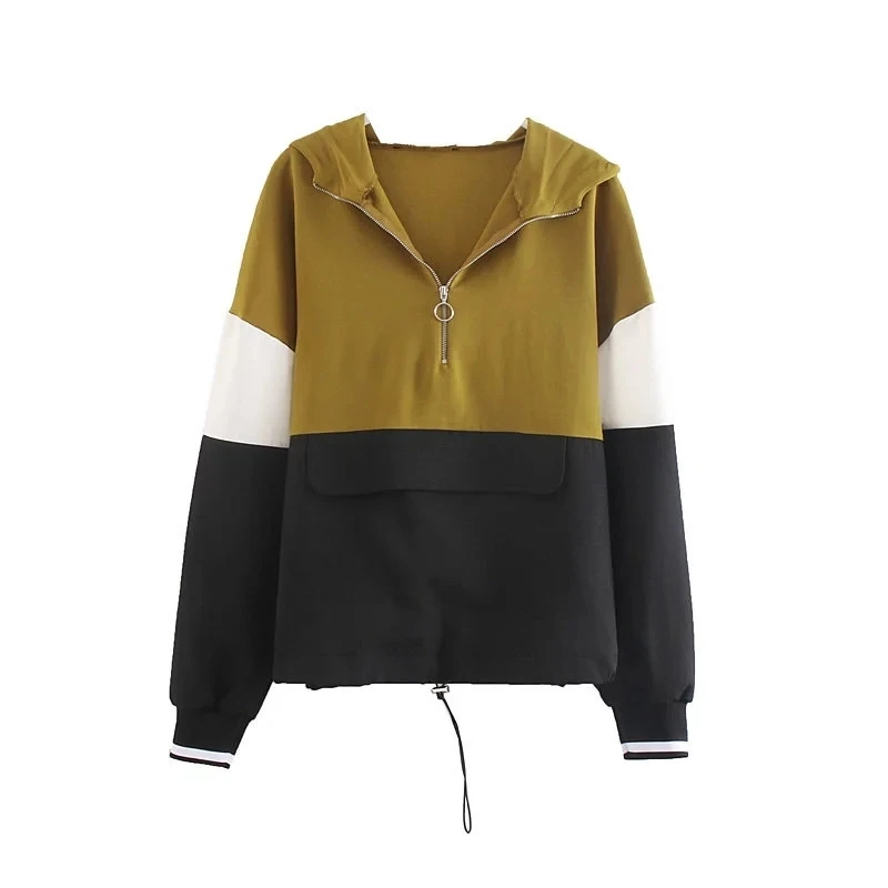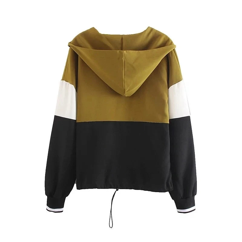 Best Price Comparison With Two-piece stitching jacket pants suit female patchwork kangaroo suit color hit color hooded jacket jogging pants suit jacket