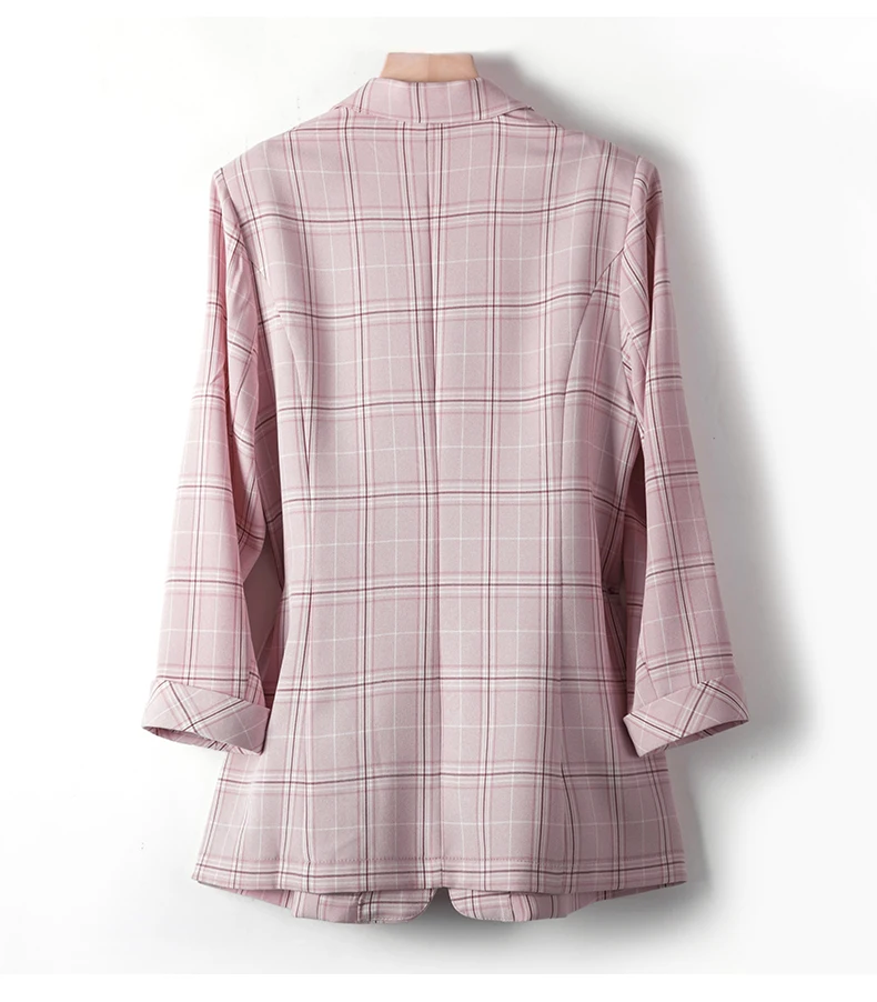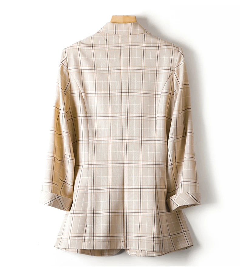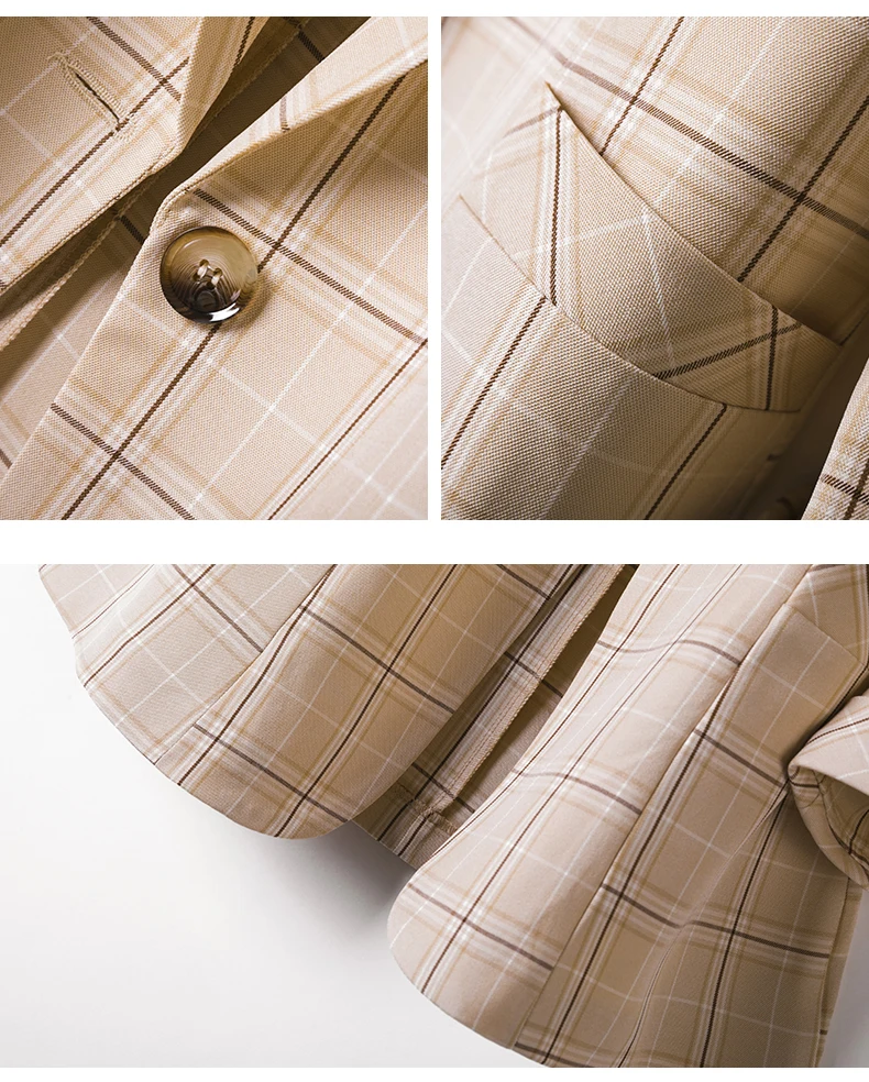 Vintage Retro Plaid Women's Blazer Long Sleeve Lapel Collar Pocket Design Casual Slim Female Coat Office Lady Clothing Tops