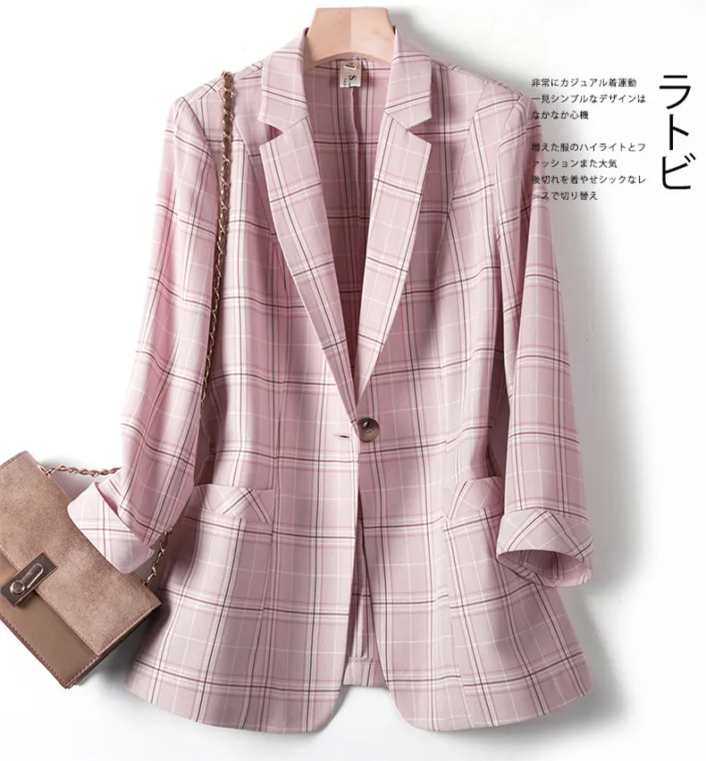 Single buckle Striped Women Blazer Spring Seven-quarter sleeve Jackets Female Suits Coat Slim Work Feminino Outerwear Plus size