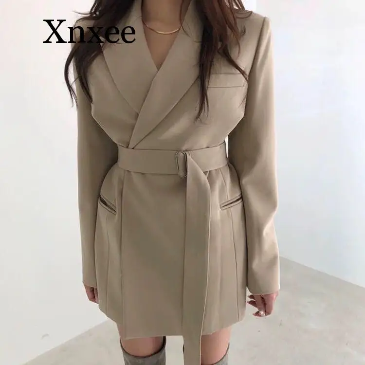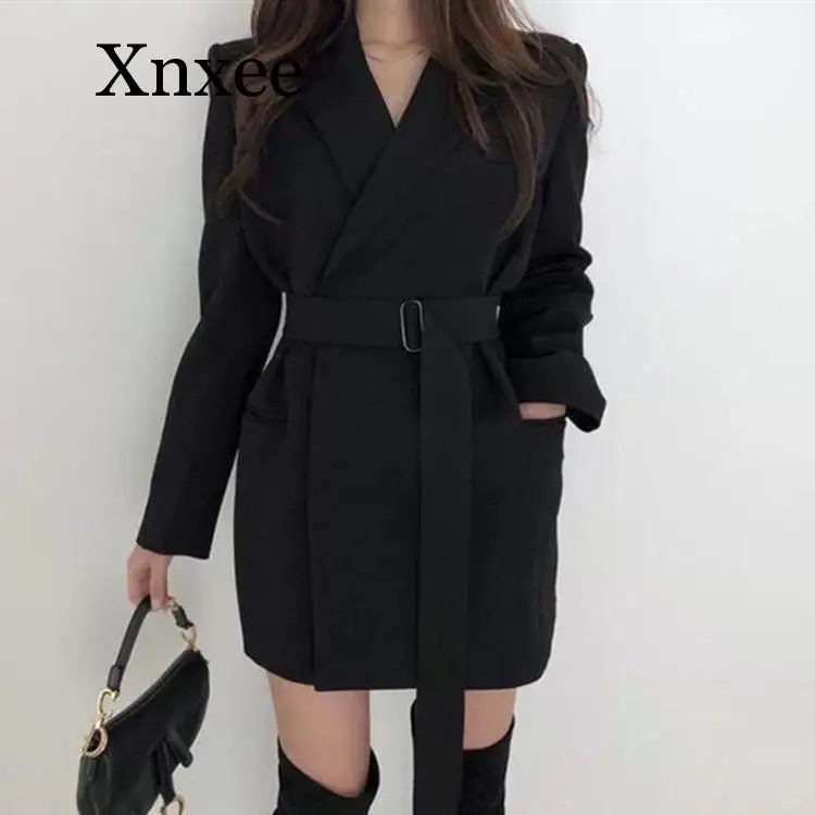 Winter Belt black blazer dress Women Elegant Double Breasted women blazers and jackets korean casual office long blazer fullBuy Now On Aliexpress
