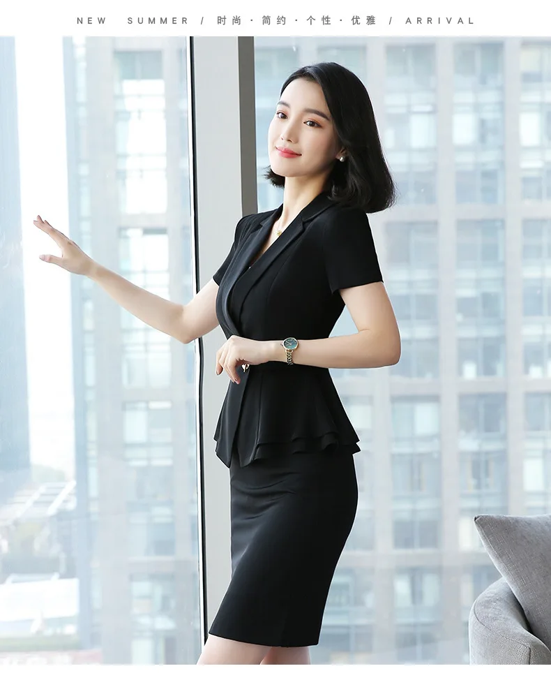 Black Women's Formal Elegant Uniform Styles Blazers Suits Two Piece with Tops and Skirt for Ladies Office Work Wear Jacket SetsBuy Now On Aliexpress