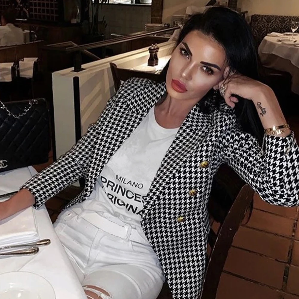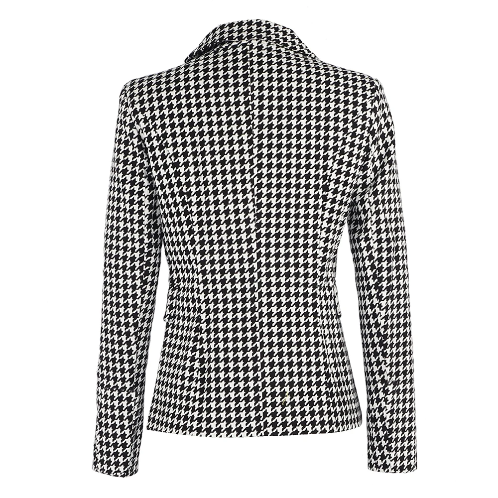 Wuhaobo Autumn Winter Plaid Print Casual Blazer Women Long Sleeve Notched Slim Women Coat Buttons Elegant Office Lady Blazer Top