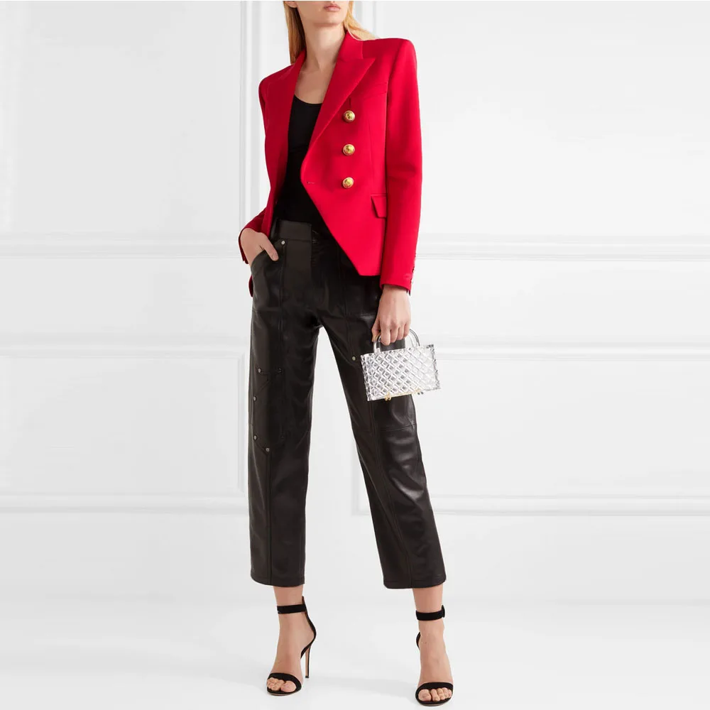 liva girl 2020 Fashion European Casual Slim fitness Metal Gold Button Jacket White Black Khaki Colors Female Blazer