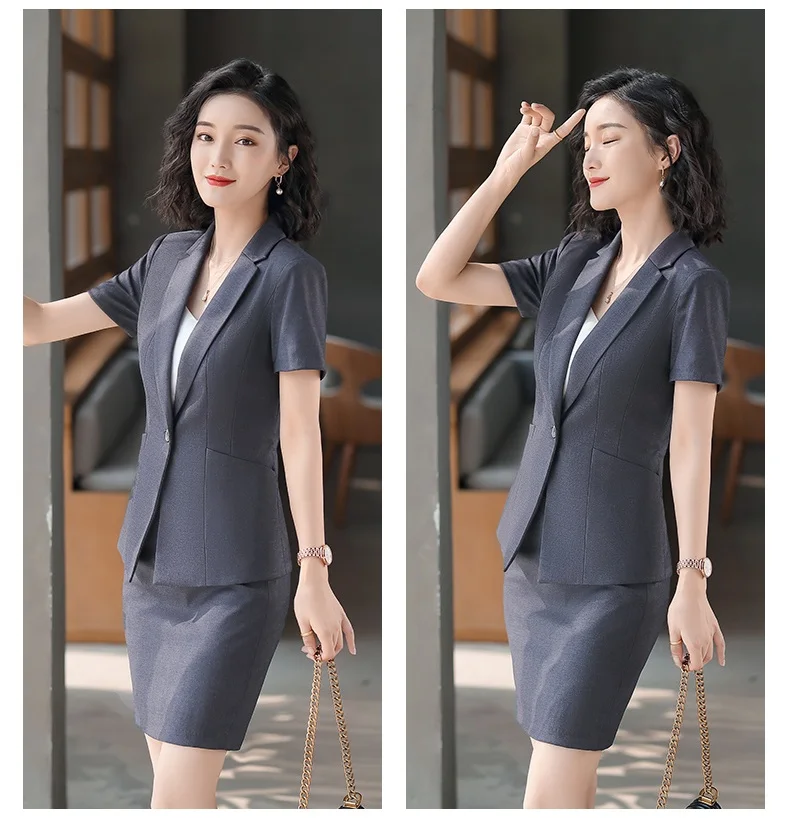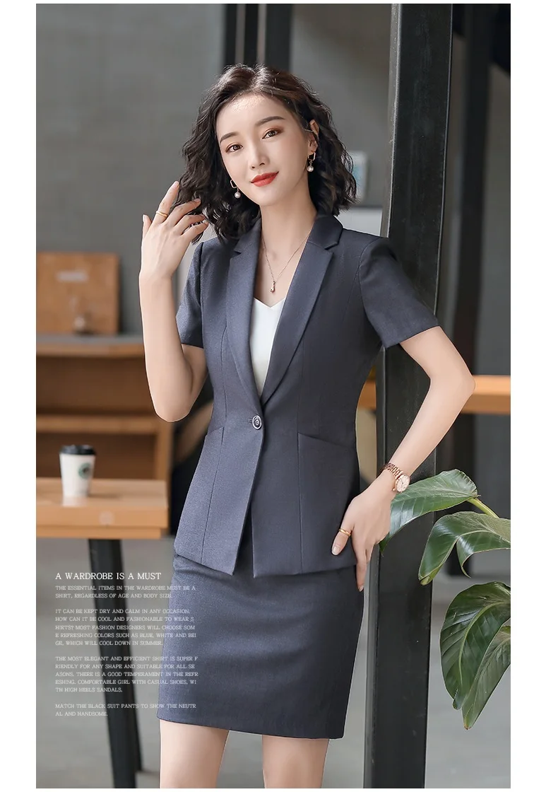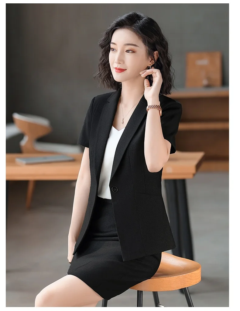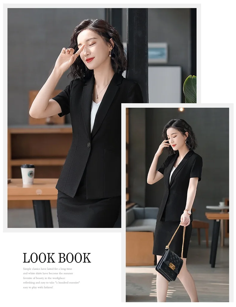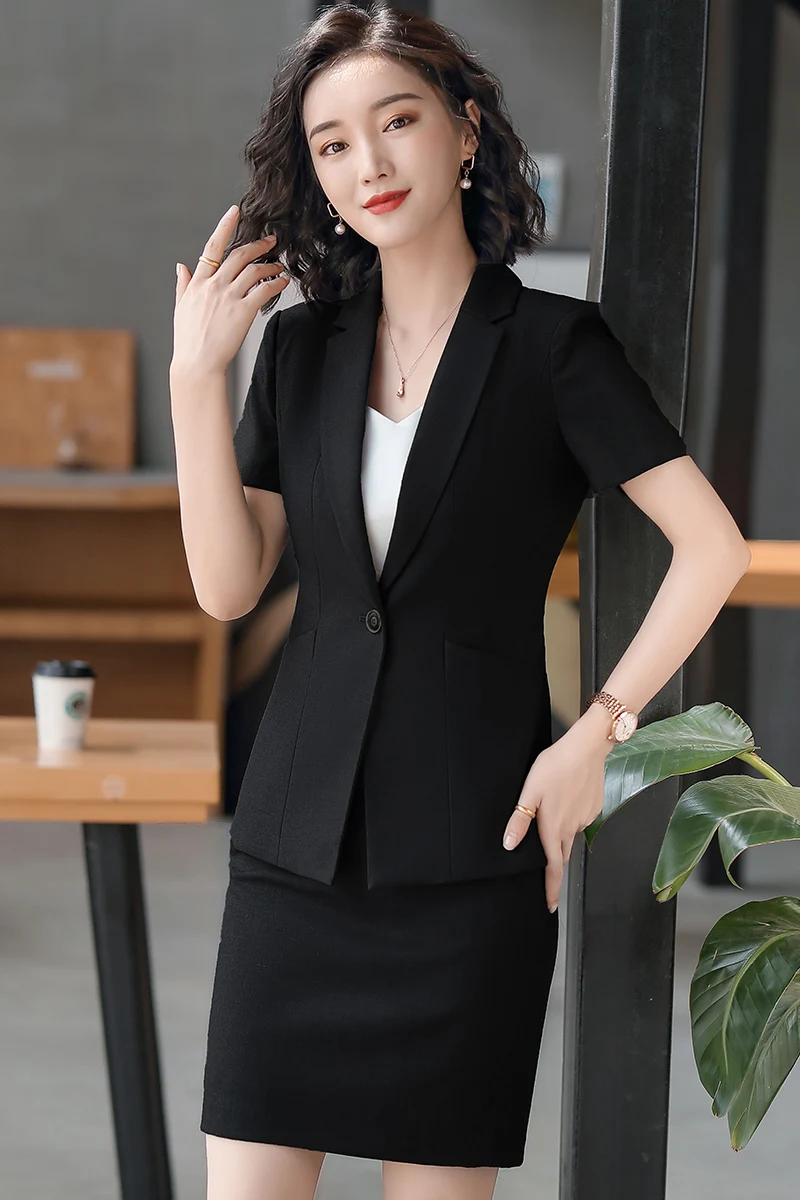 | Female Elegant Formal Office Work Wear Summer Ladies Black Blazer Women Business Suits with Skirt and Jacket Sets Uniform Style |