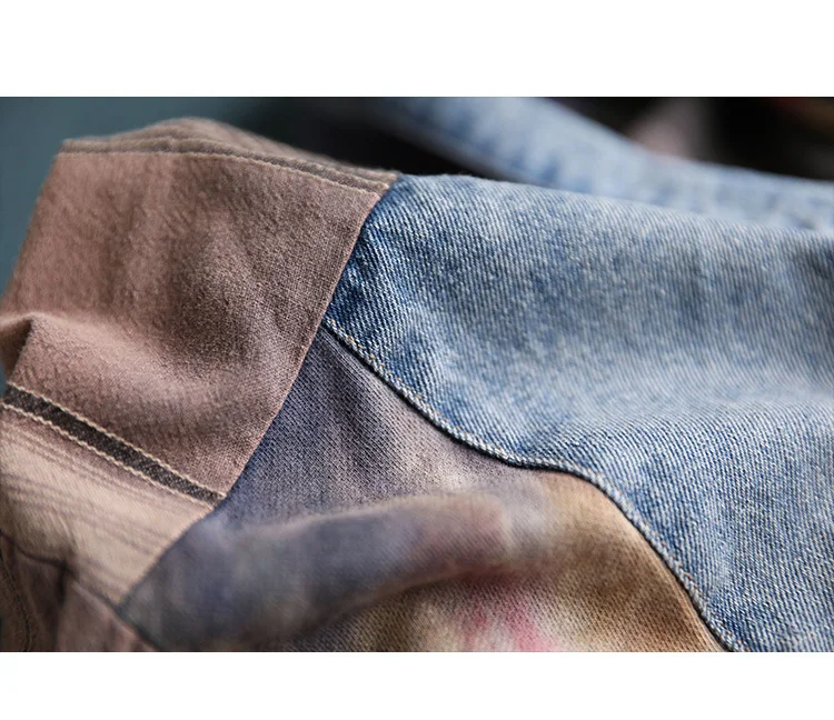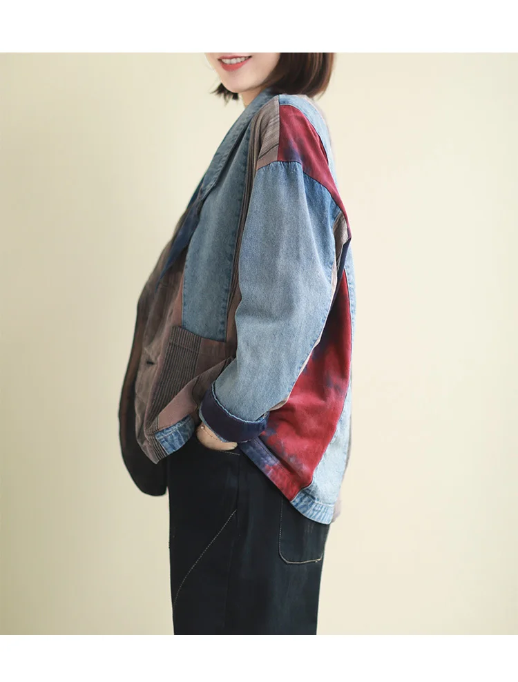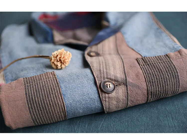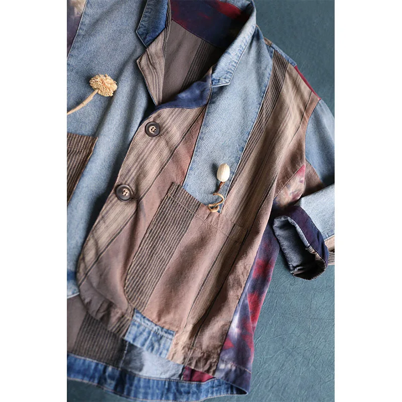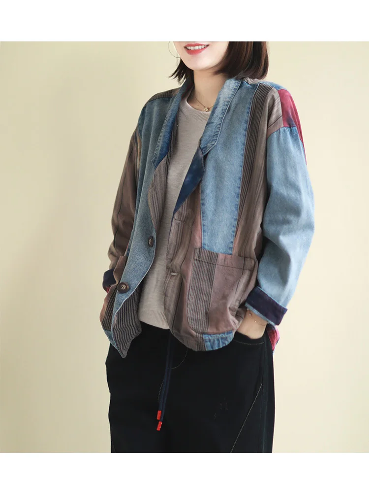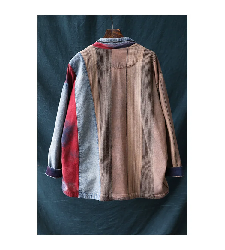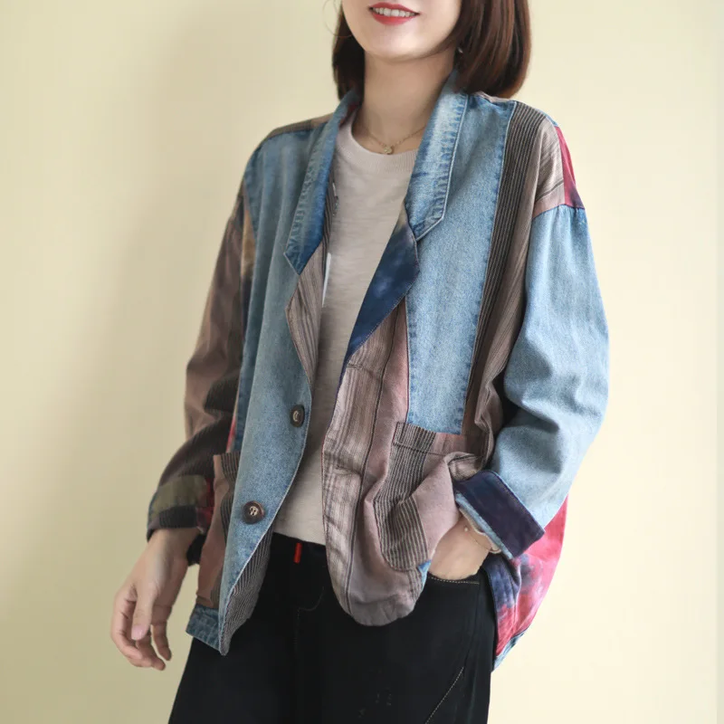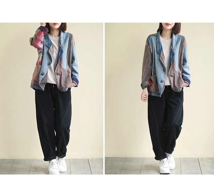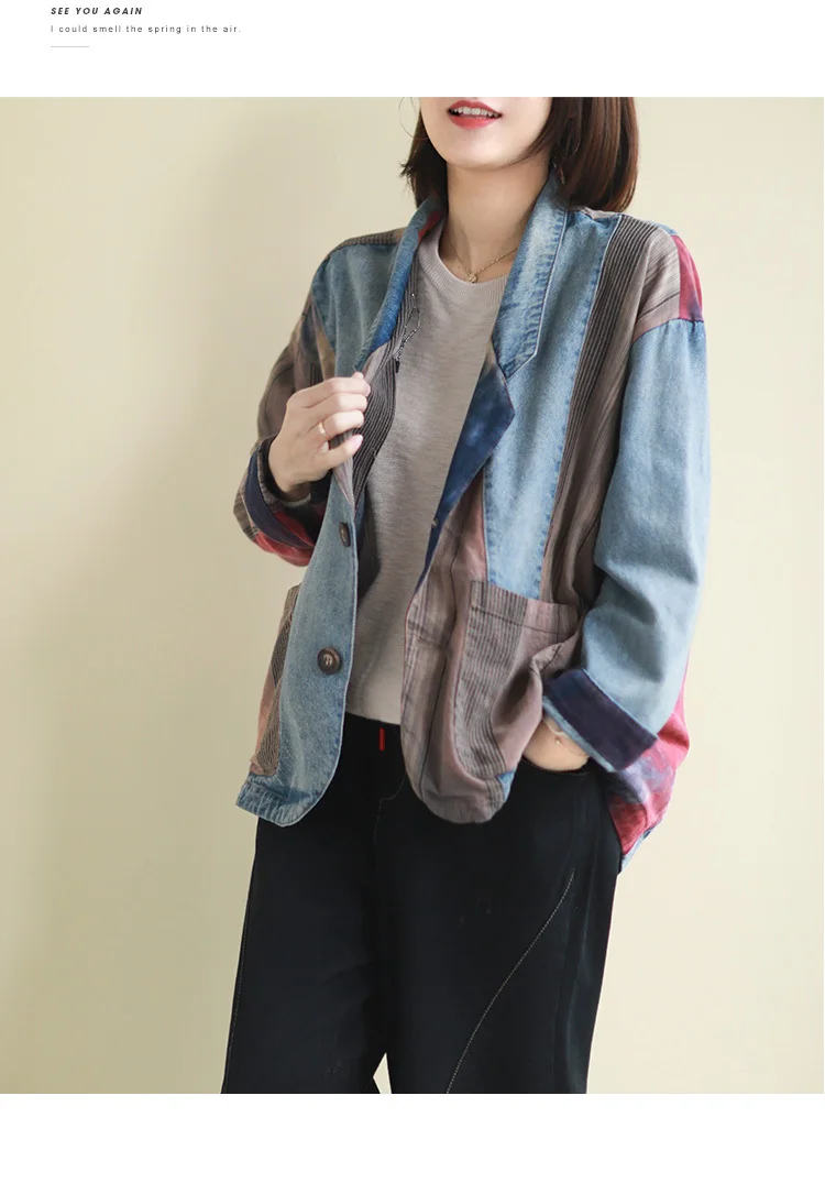 | Female Long Sleeve Loose Womens Tops And Blouses Vintage Unique Design Splicing Cowboy Clothing Suit Coat |