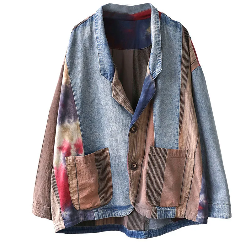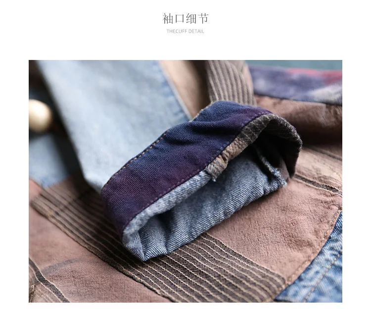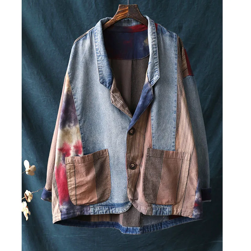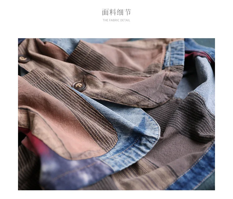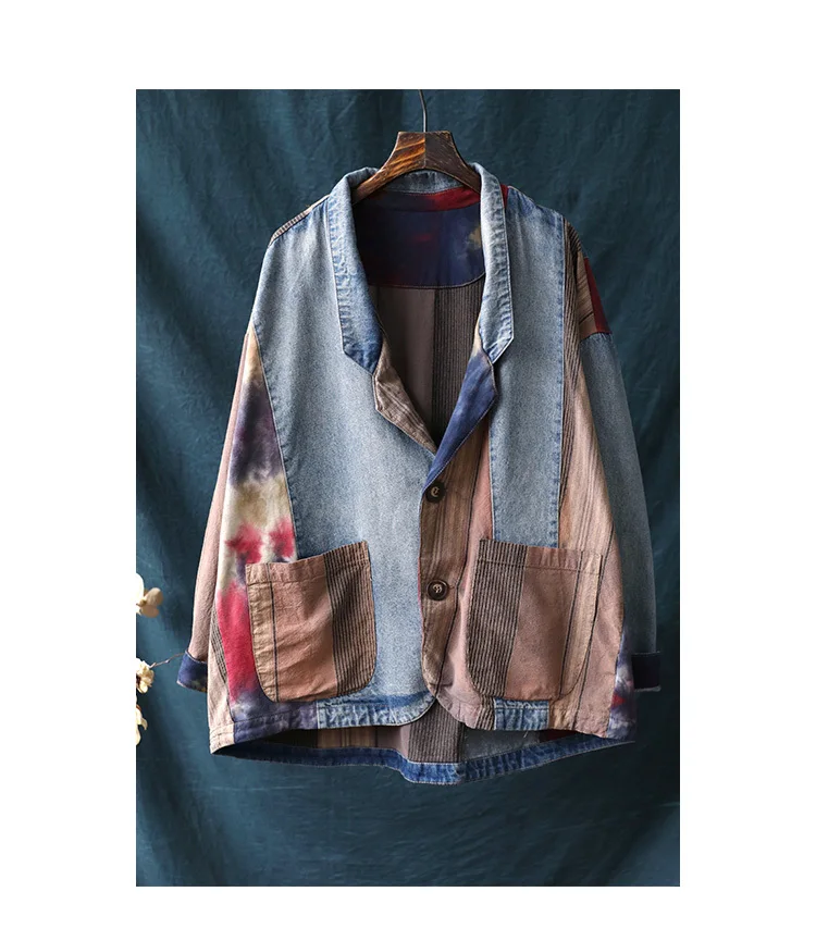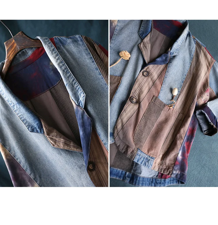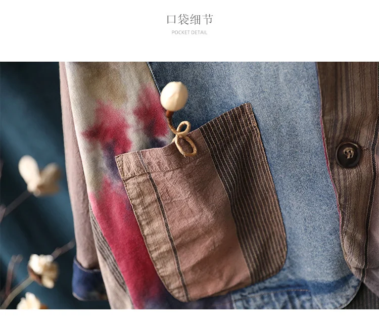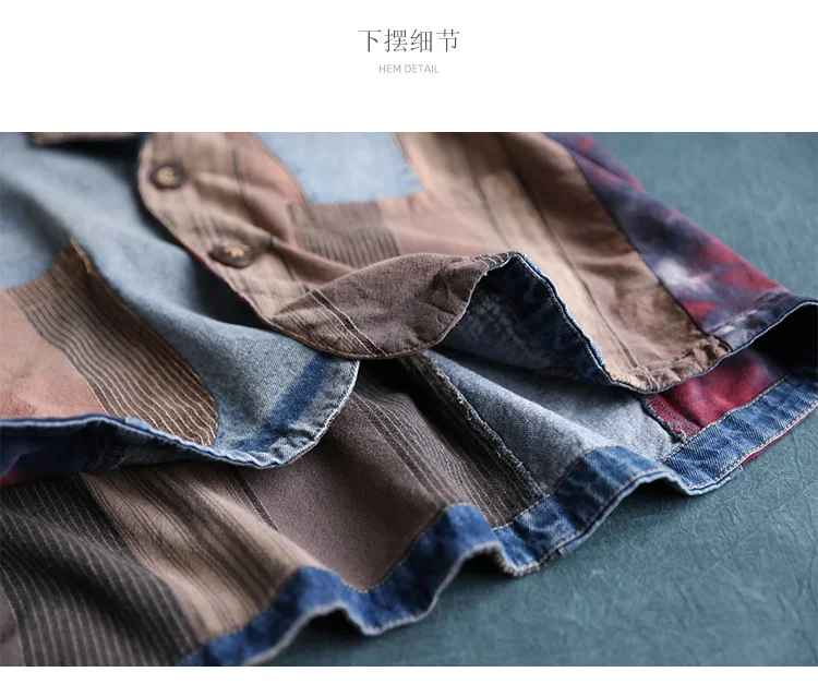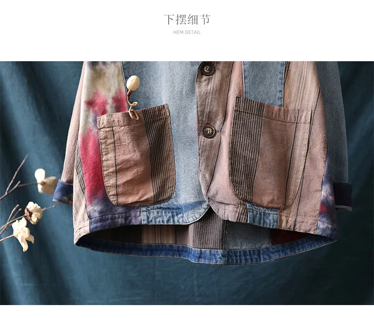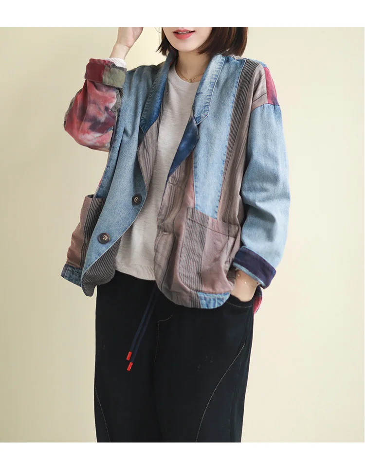 | Female Long Sleeve Loose Womens Tops And Blouses Vintage Unique Design Splicing Cowboy Clothing Suit Coat |