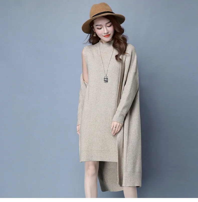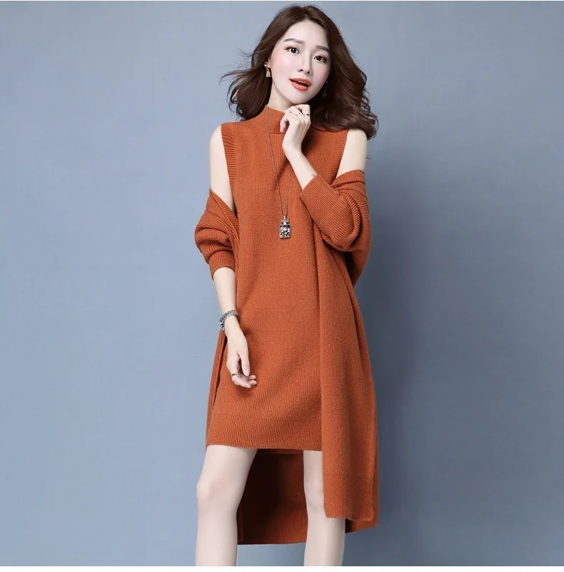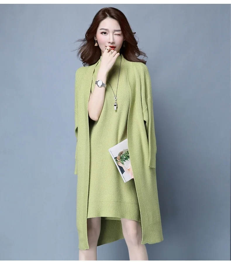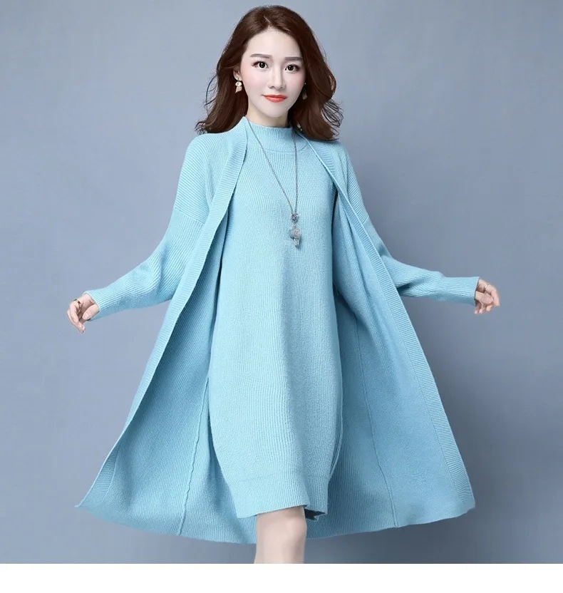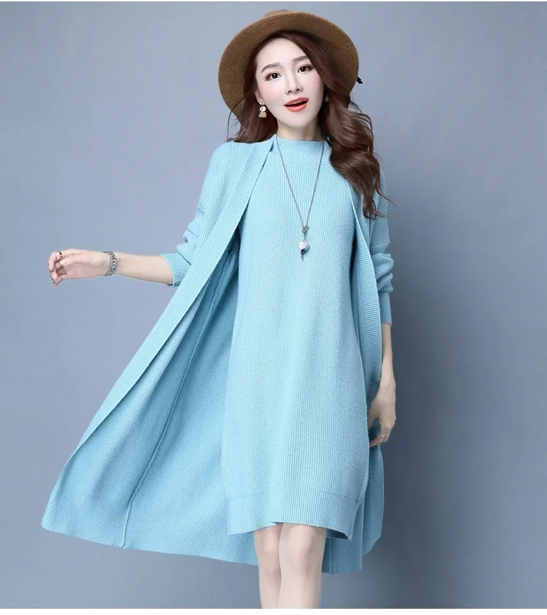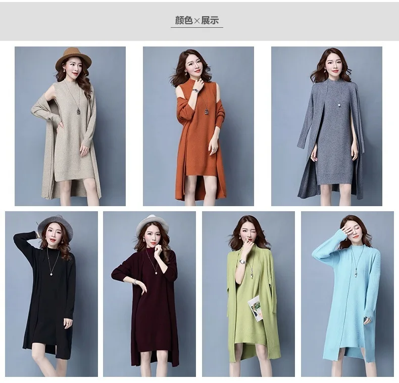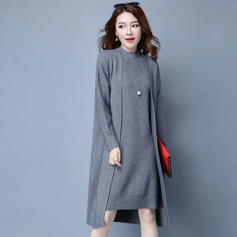 | Knitted Dress Suit Tracksuit Women Set Two Piece Long Jacket Knit Sweater Dresses Ladies 2020 New Fashion Spring Autumn Clothing |