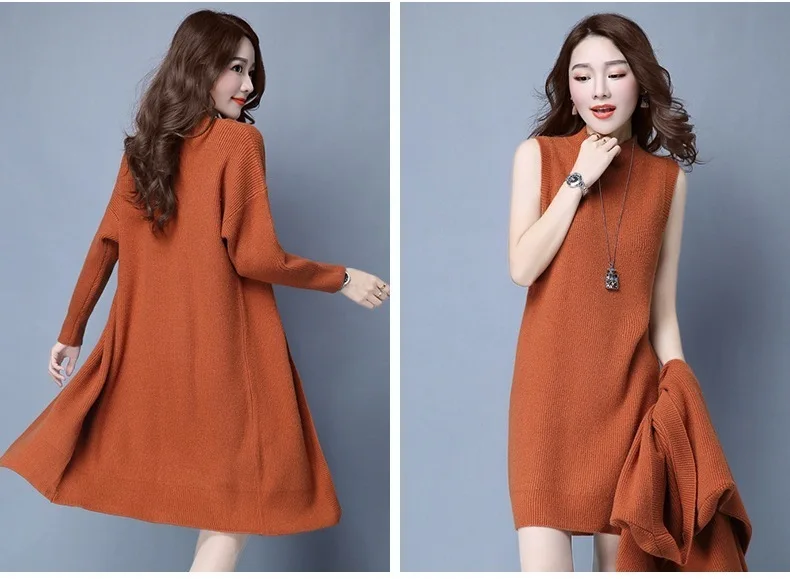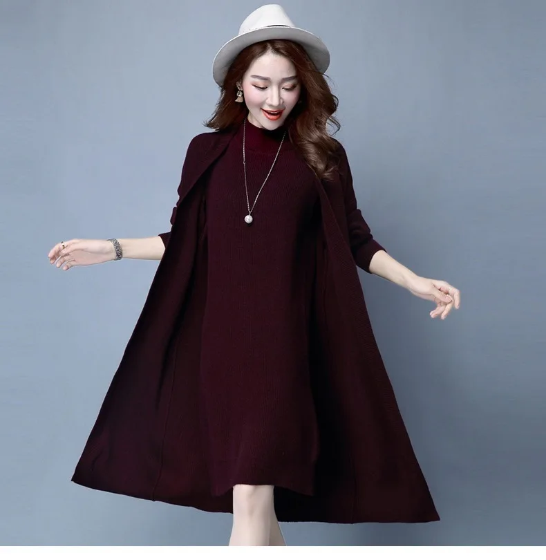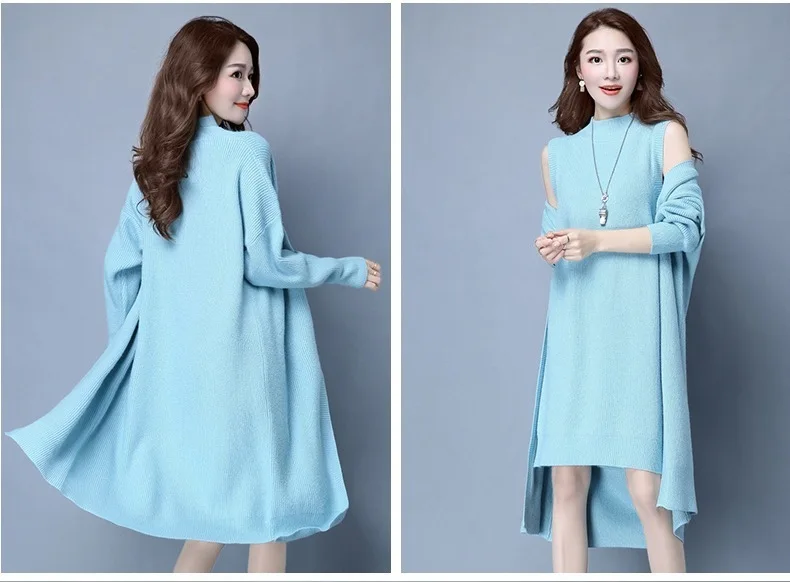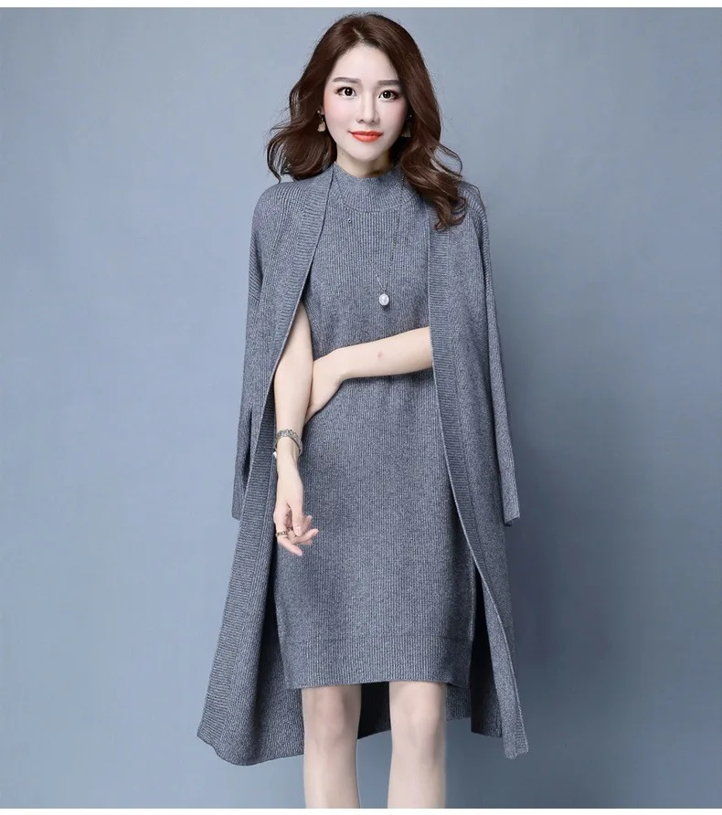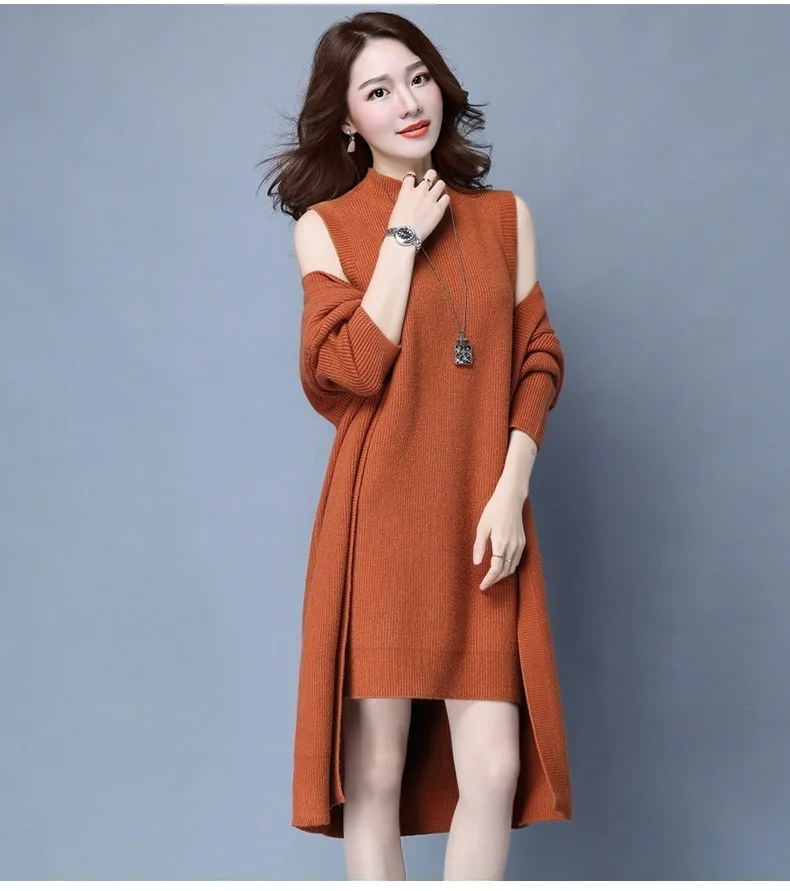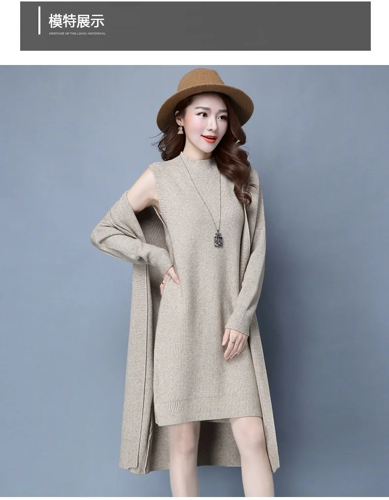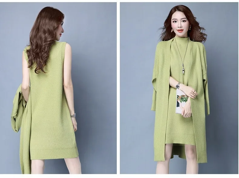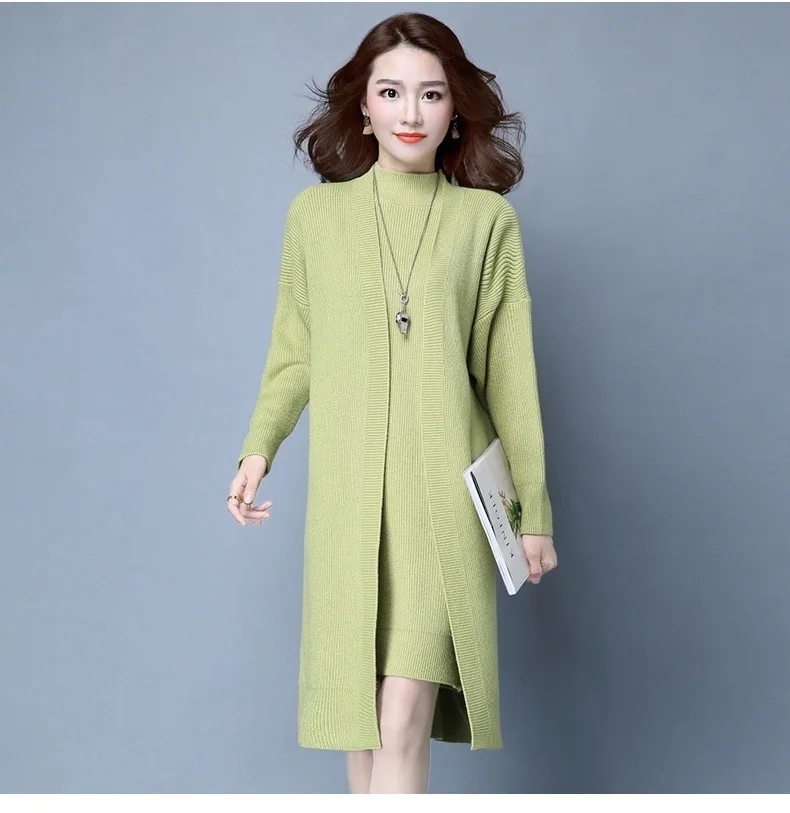 | Knitted Dress Suit Tracksuit Women Set Two Piece Long Jacket Knit Sweater Dresses Ladies 2020 New Fashion Spring Autumn Clothing |