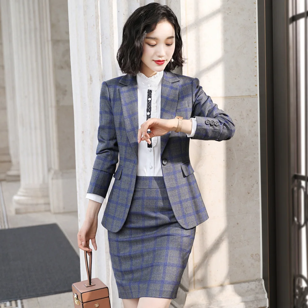 Ladies Skirt Suits Women Fashion Plaid Busness Suits Blazer and Jacket Set 2 Piece Workwear Femal Office Uniform Design 80807Buy Now On Aliexpress
