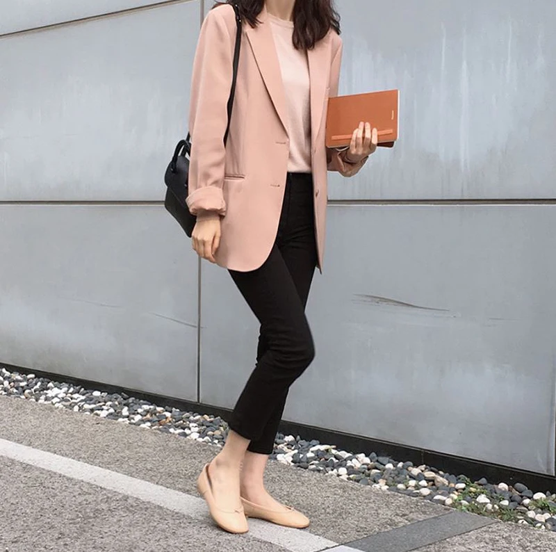 HziriP Hot Office Lady Casual Elegant Chic 2019 High Quality Fashion Solid Brief Women Women Loose Simple All Match Blazers