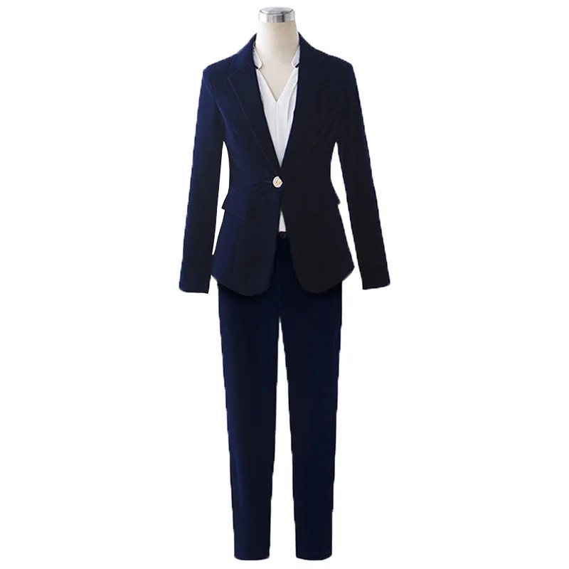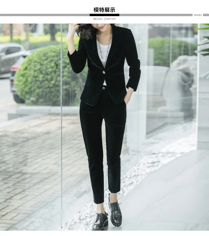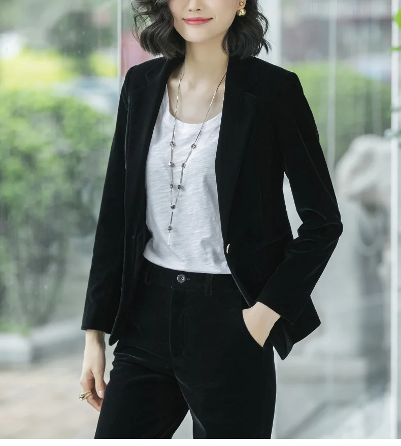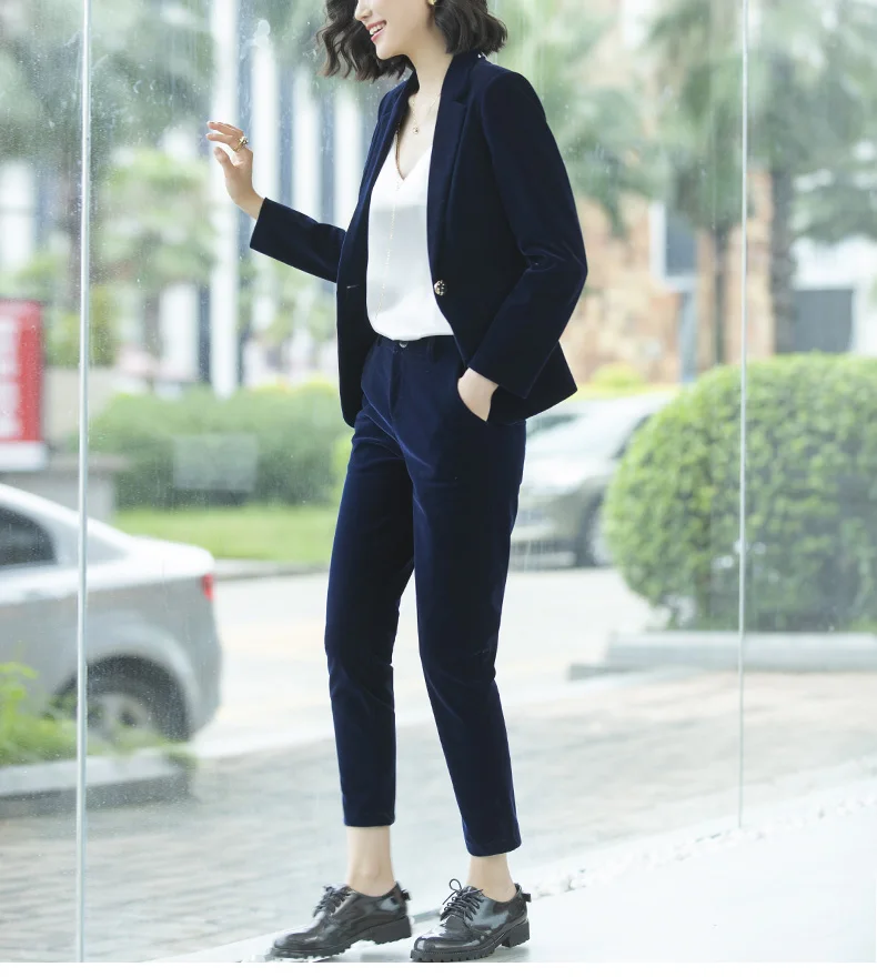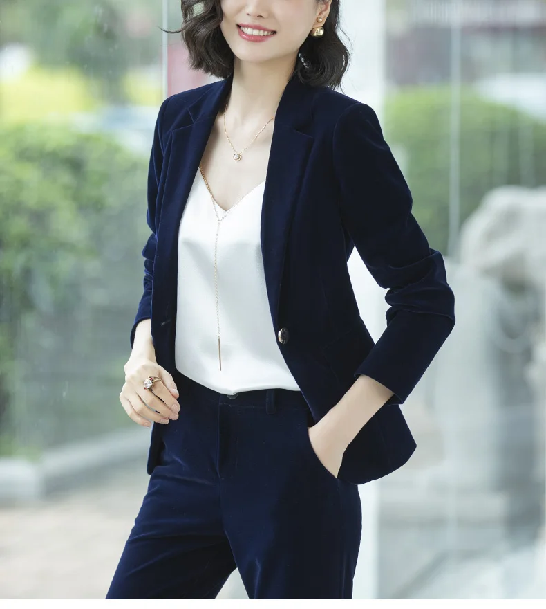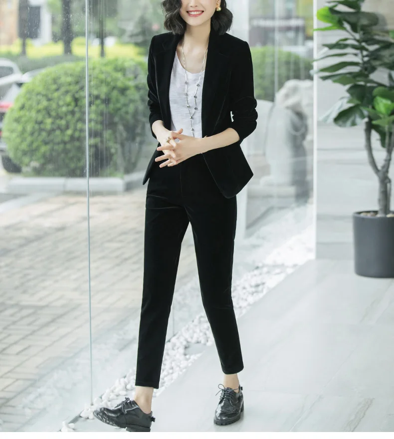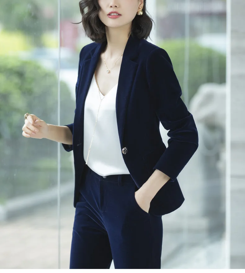 | Women's Gold velvet pants suits blazer soft warm fabric trouser jacket blue wine black blazer and pant office ladies work wear |