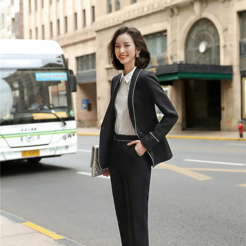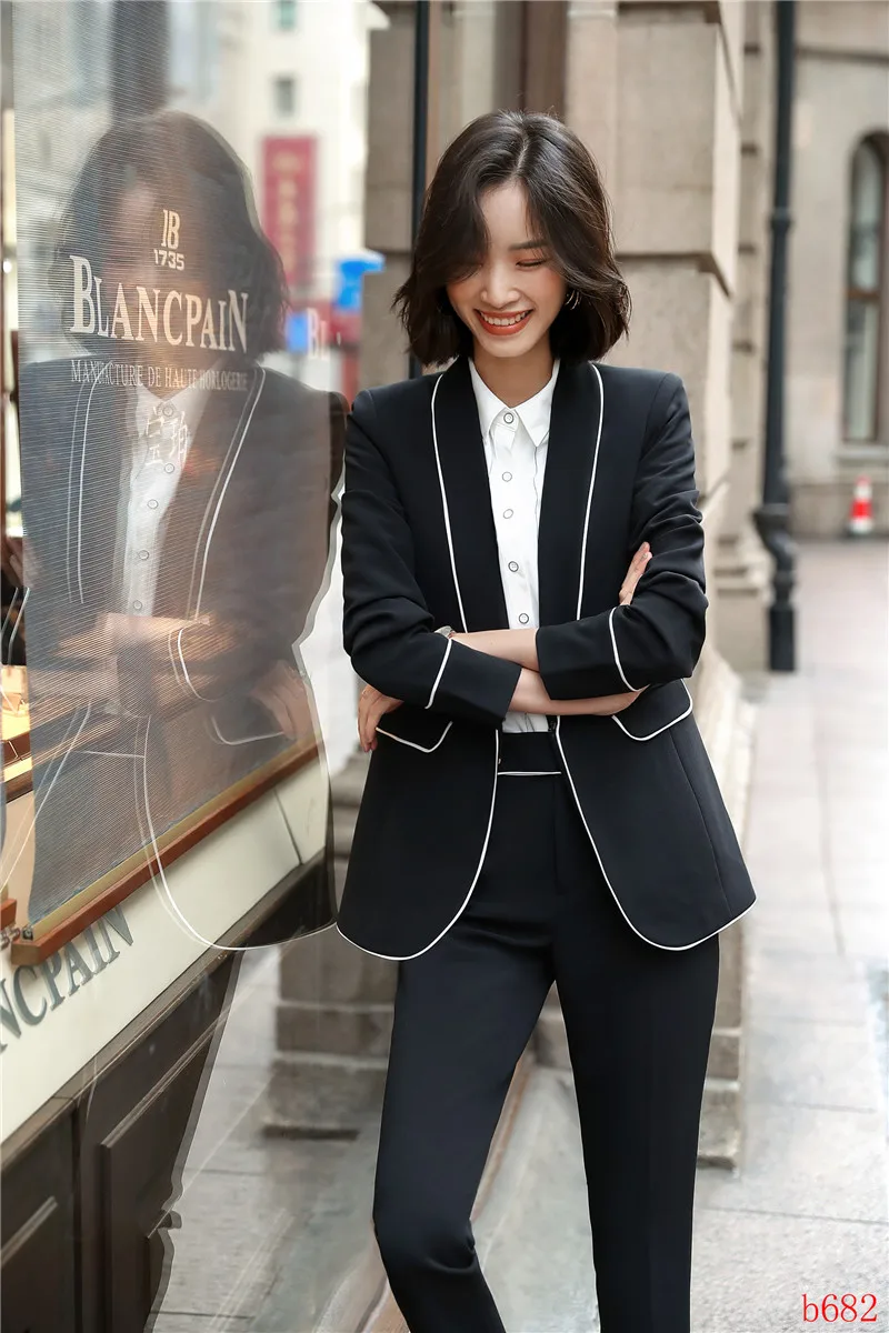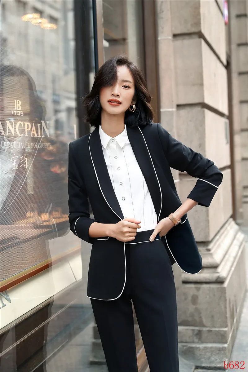 2020 Fashion Female Elegant Business Pant Suits Office Uniform Formal OL Long Pant Blazer And Pants 2 Piece Set Jacket Trousers