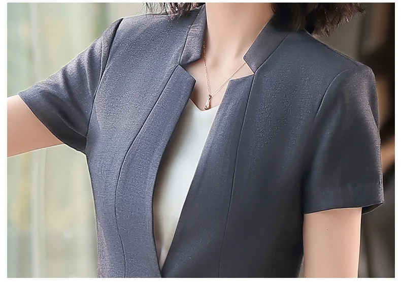 | 2020 New Female Elegant Formal Office Work Wear Summer Fashion Ladies Black Blazer Women Jackets Short Sleeve Clothes OL Styles |