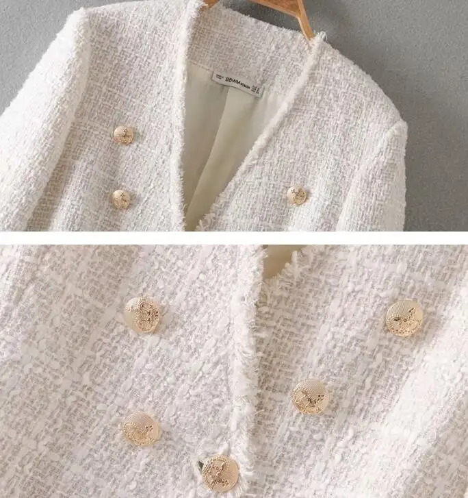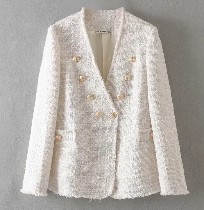 | Blazer Women Fashion Runway Luxury Designers Long Sleeve Double Breasted Elegant 2019 Tweed Blazers and Jackets Suit Coat Femme |
