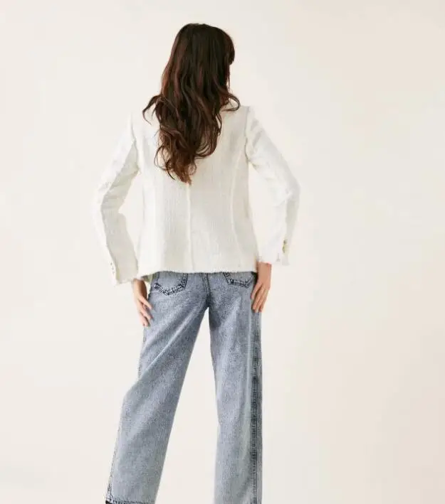Huaxiafan Women Blazer Winter Jacket White Button Chic Wear Overcoat Female Fashion Outwear Elegant Lady Jackets Long Sleeve