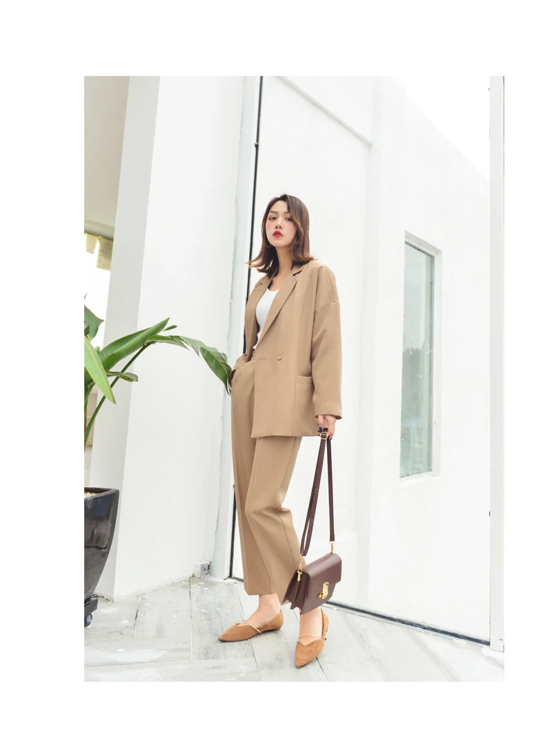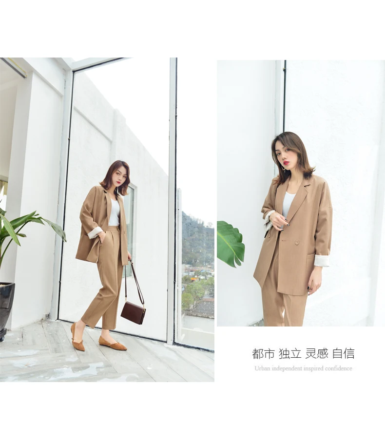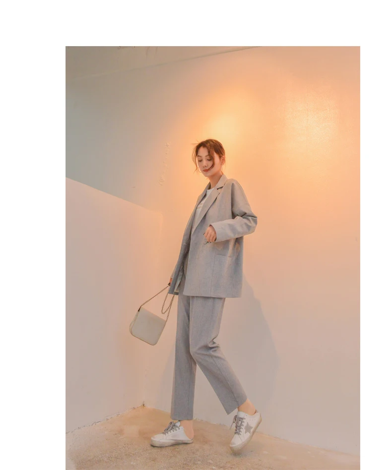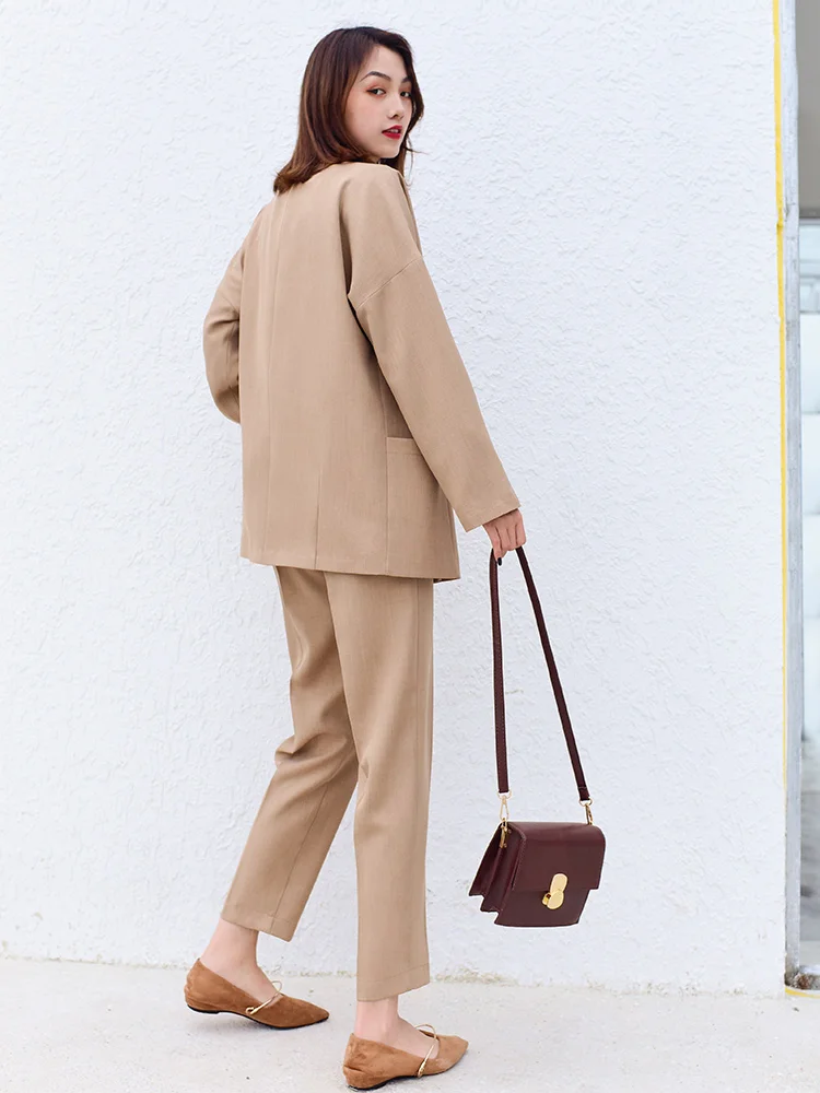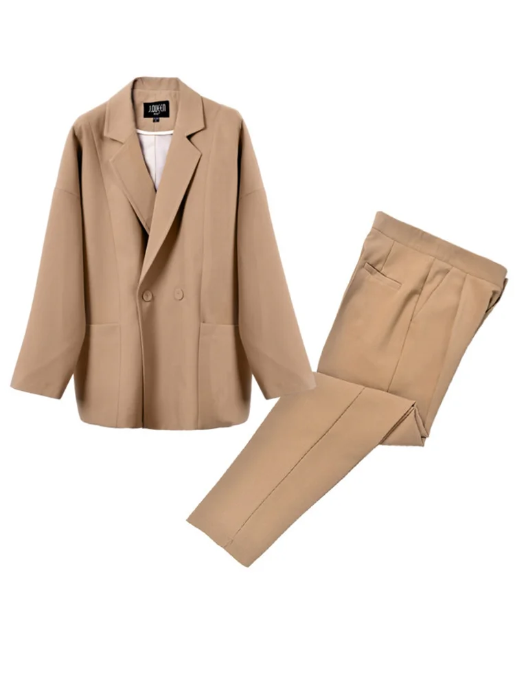 | Business Office Suits Vintage Blazer Sets Workwear Elegant Korean Oversize Women Pant Suits Khaki Grey Navy High Quality |
