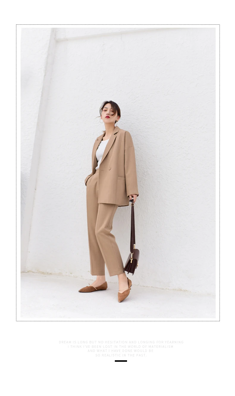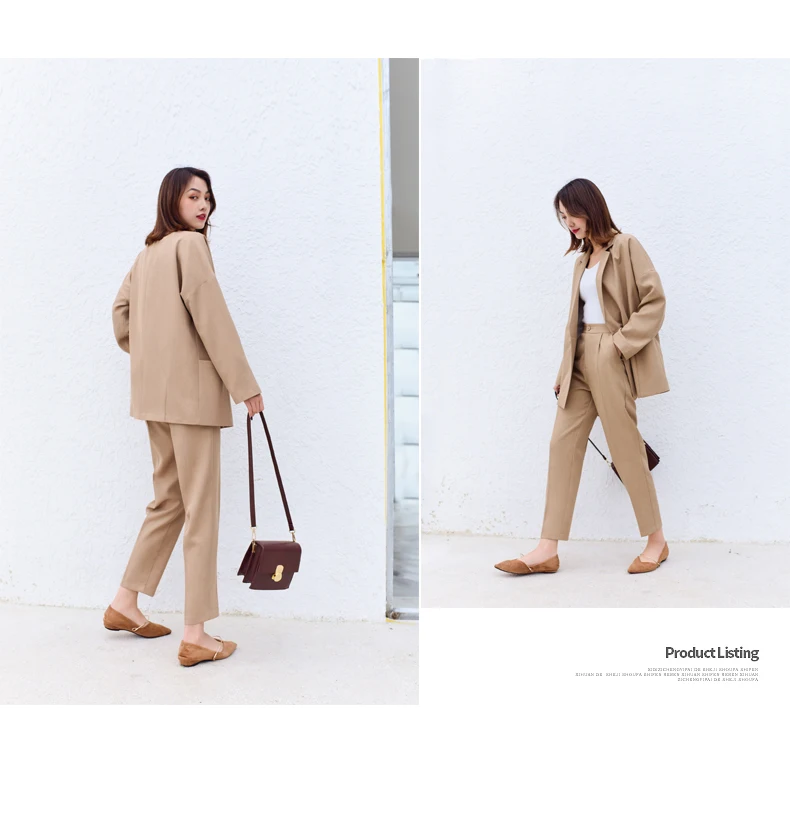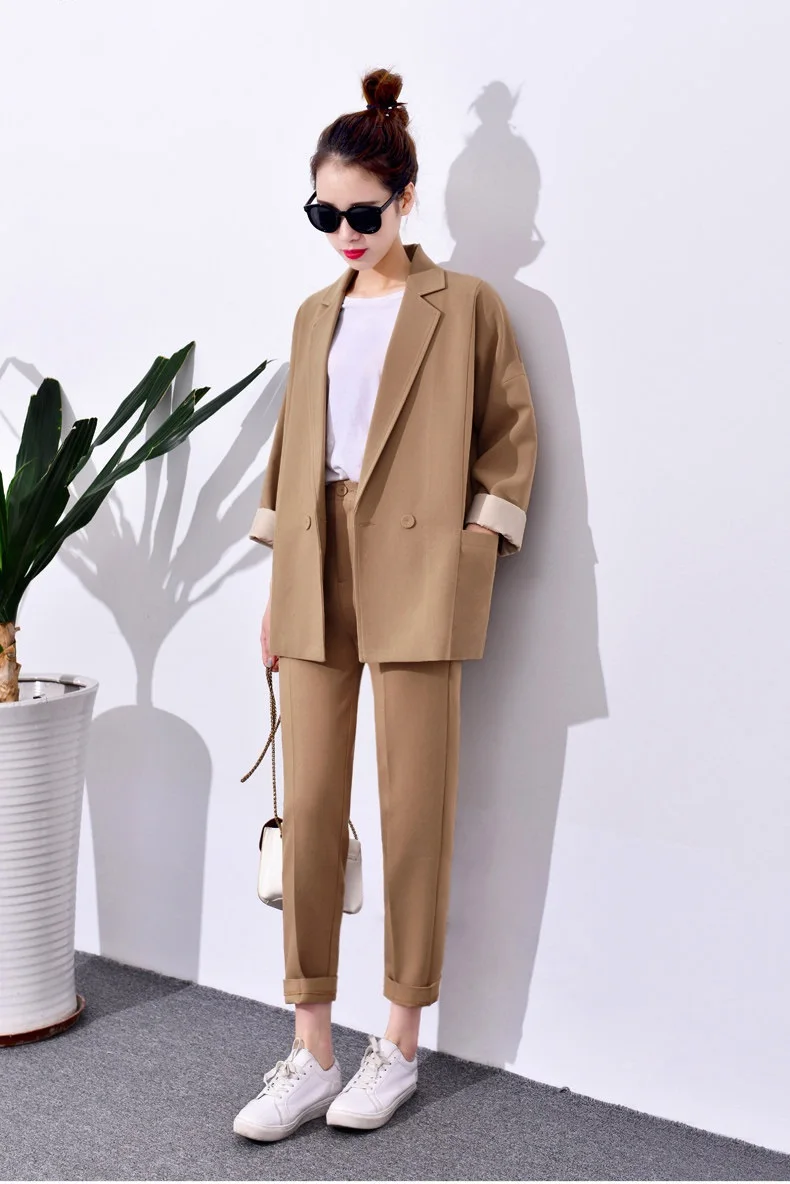 Best Price Comparison With Business Office Suits Vintage Blazer Sets Workwear Elegant Korean Oversize Women Pant Suits Khaki Grey Navy High Quality