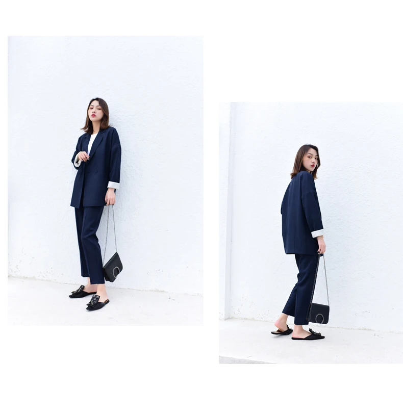 Work Pant Suits OL 2 Piece Sets Single Breasted Long Oversize Blazer Jacket+Button Wide Leg Trousers Suit For Women Autumn 2019Buy Now On Aliexpress