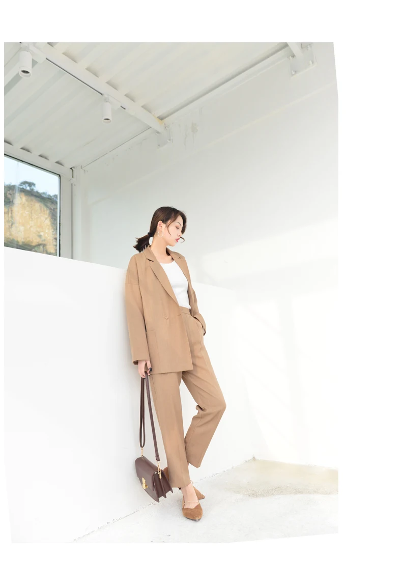 2 Pieces Sets 2020 Spring Autumn Women Suits Cotton Linen Blazers Casual Elegant Office Ladies Style Long Pants Set