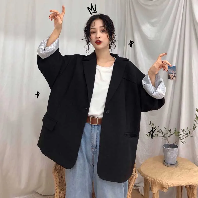 | Korean 2019 Spring Fashion Women Blazer Long Sleeve Casual Loose Preppy Style Single Button Jacket Tops Female Coat oversize |