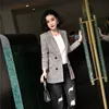 Women's Black White Sequins Plaid Outfits Elegant Blazer Skirt 2 Pieces Business Career Skirt Suits Office Clothes skirt set