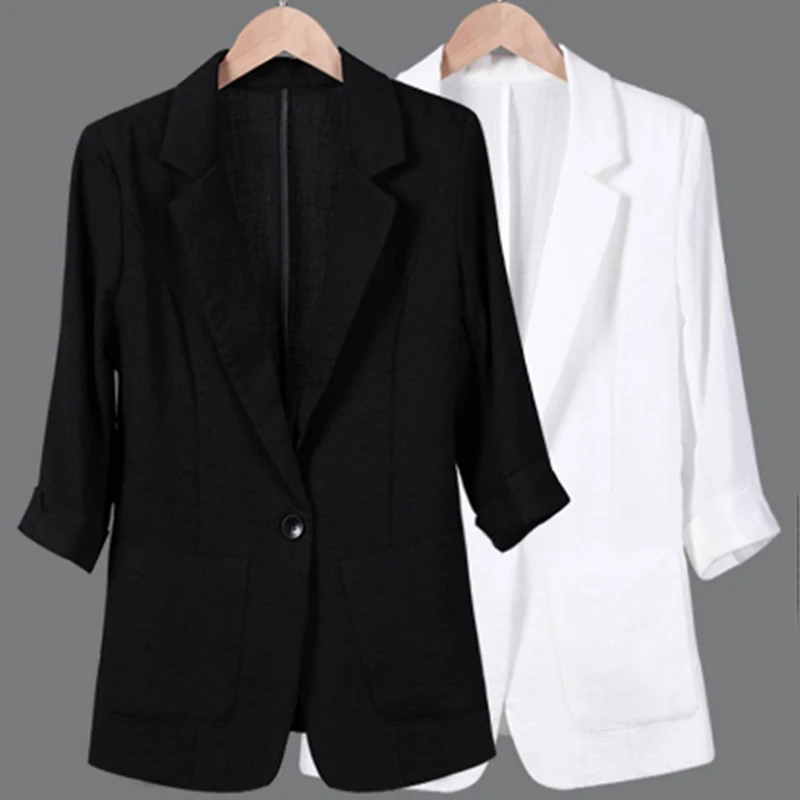 Women's Suits Cotton Linen Blazer Coat Women Fashion Slim Blazers Jacket Autumn Single Button Leisure Blazer Office Clothes