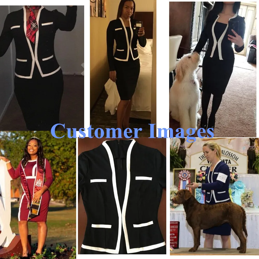 2018 Ladies Elegant Long Sleeve Black and White Dress Pencil Women Formal Dresses Suit for Work Party Tunic Office Bodycon