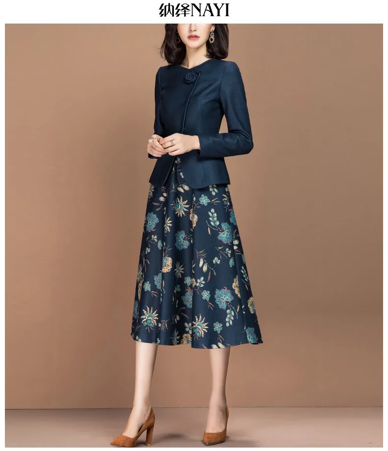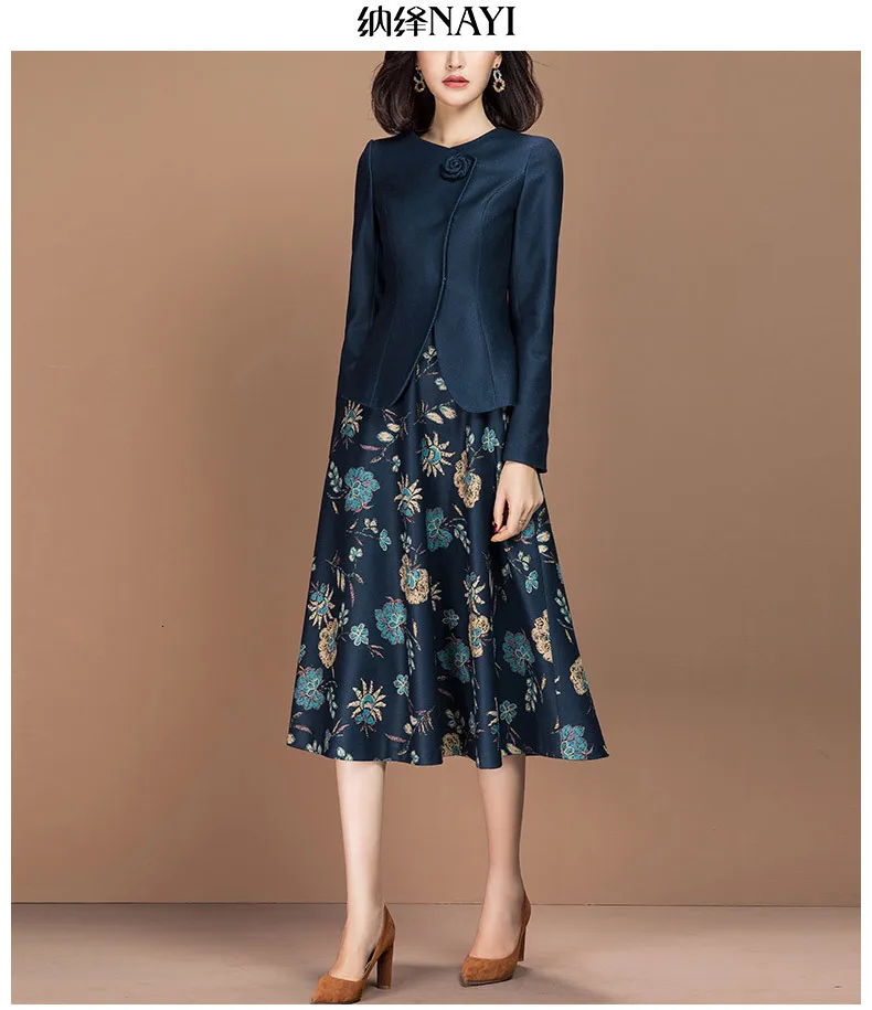 | Women Suits Elegant Office Ladies Formal Work Business Wear Slim Blazer Jacket Plus Size Knee Length Floral Dress Two Piece Set |