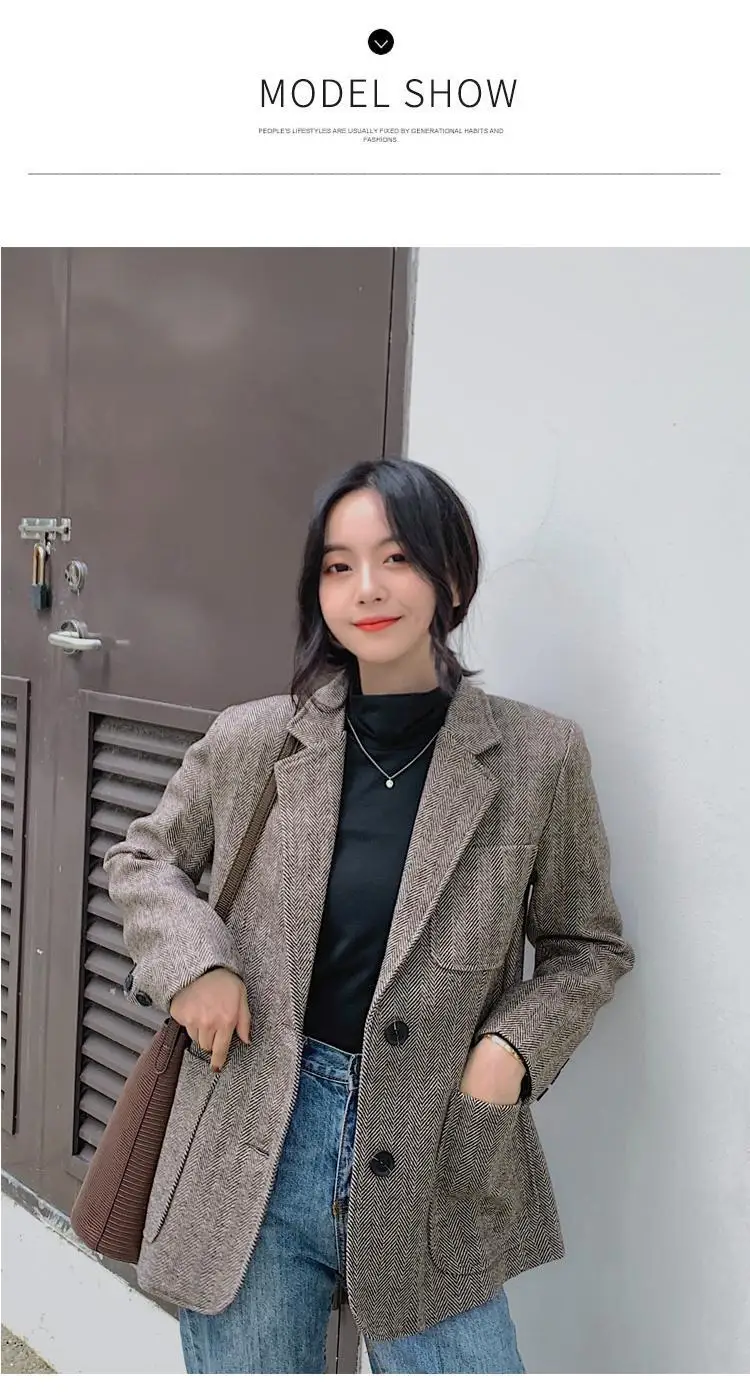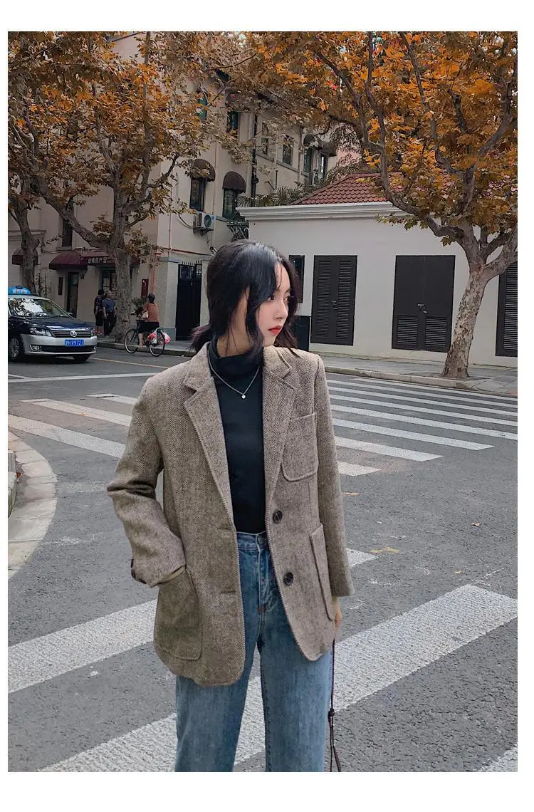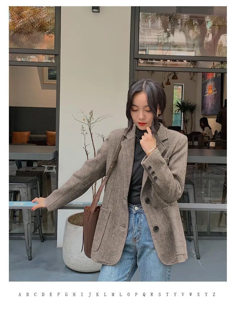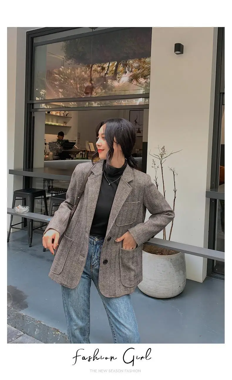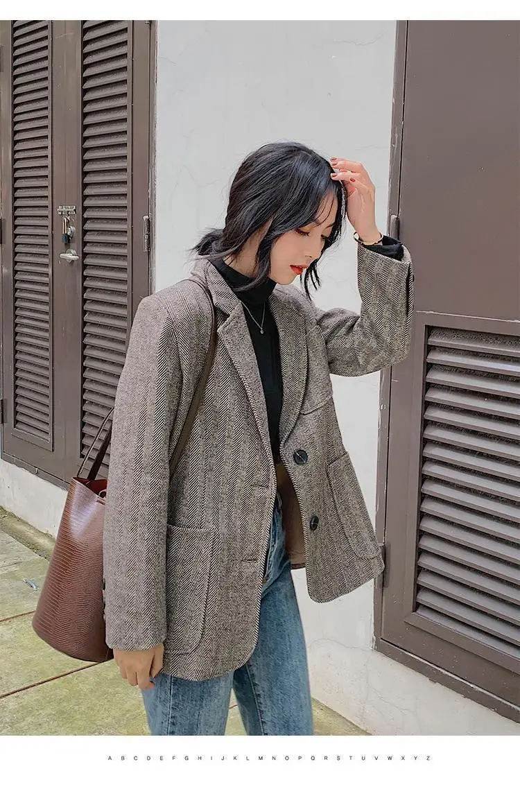 2019 Autumn Korean Blazer Women Herringbone Pattern Casual Blazers Single Breasted Office Lady Vintage Woolen Blazer CoatsBuy Now On Aliexpress
