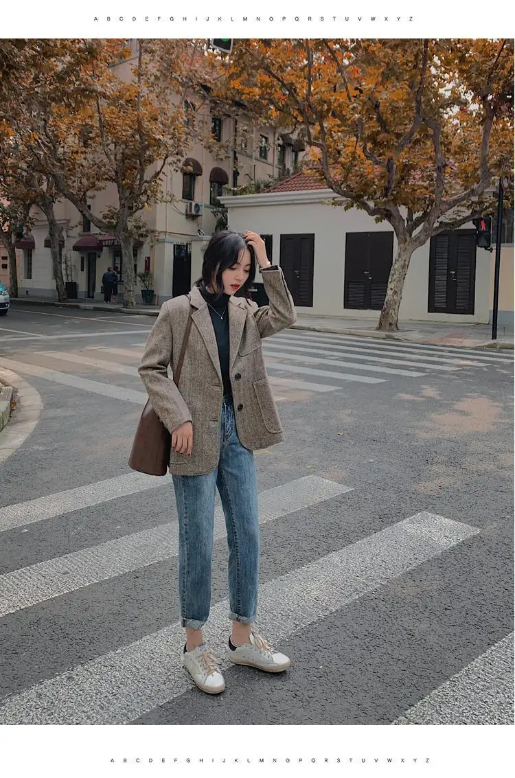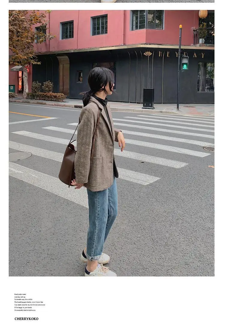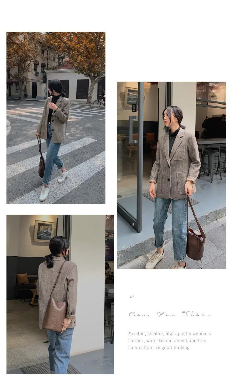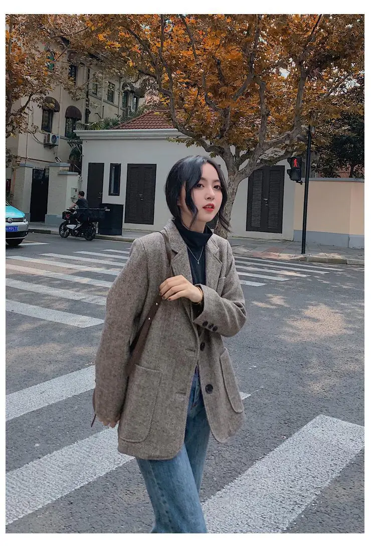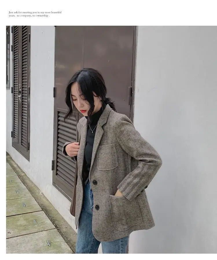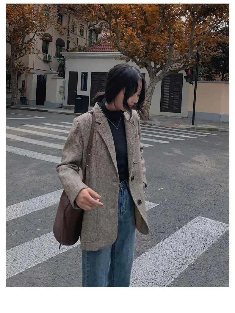 2019 Autumn Korean Blazer Women Herringbone Pattern Casual Blazers Single Breasted Office Lady Vintage Woolen Blazer CoatsBuy Now On Aliexpress