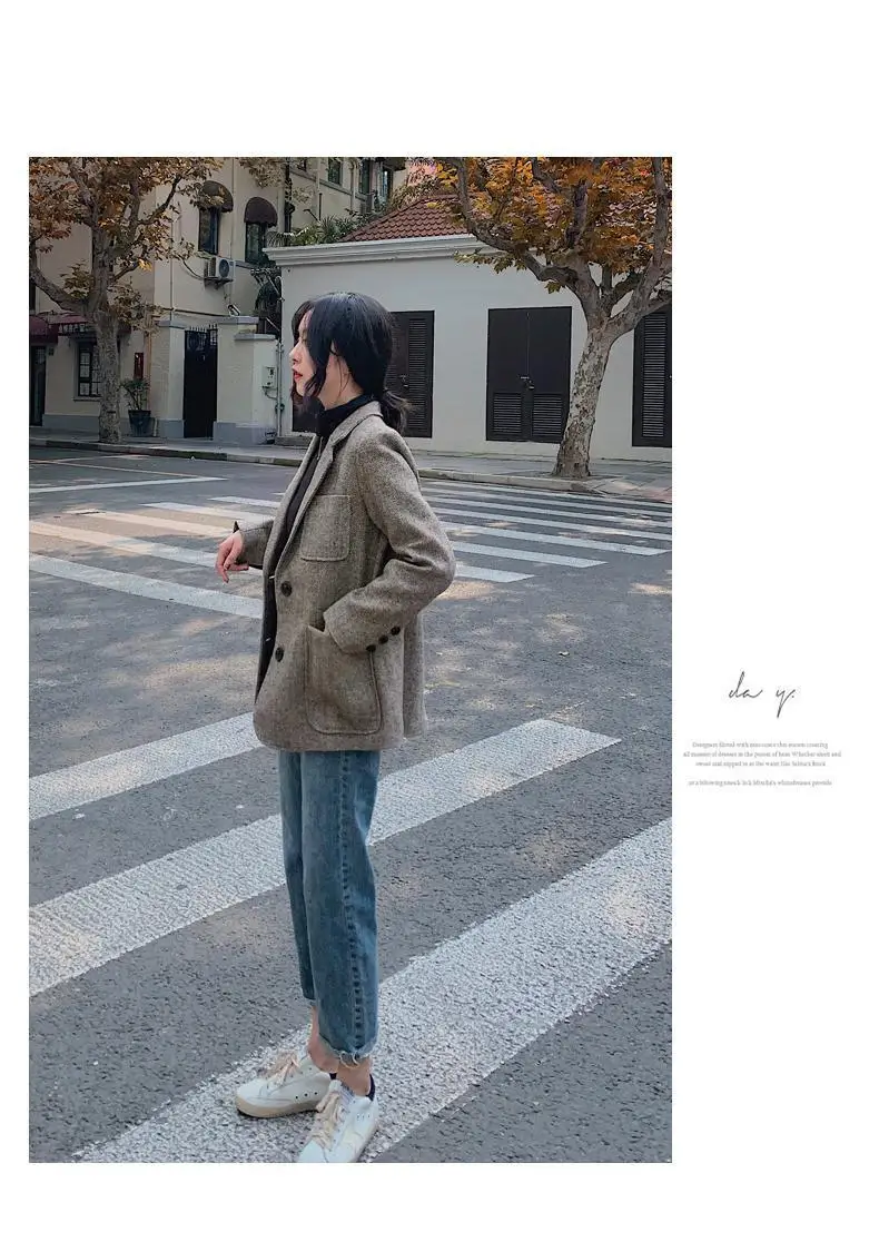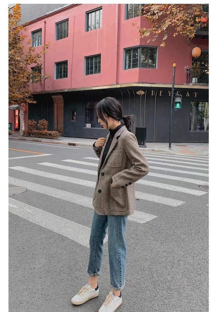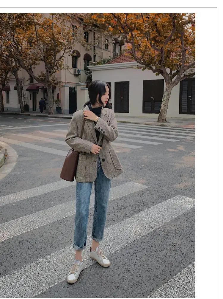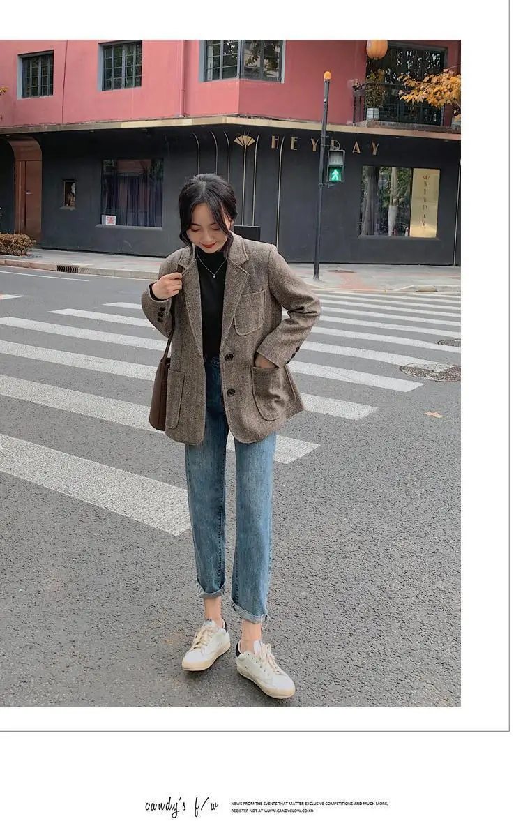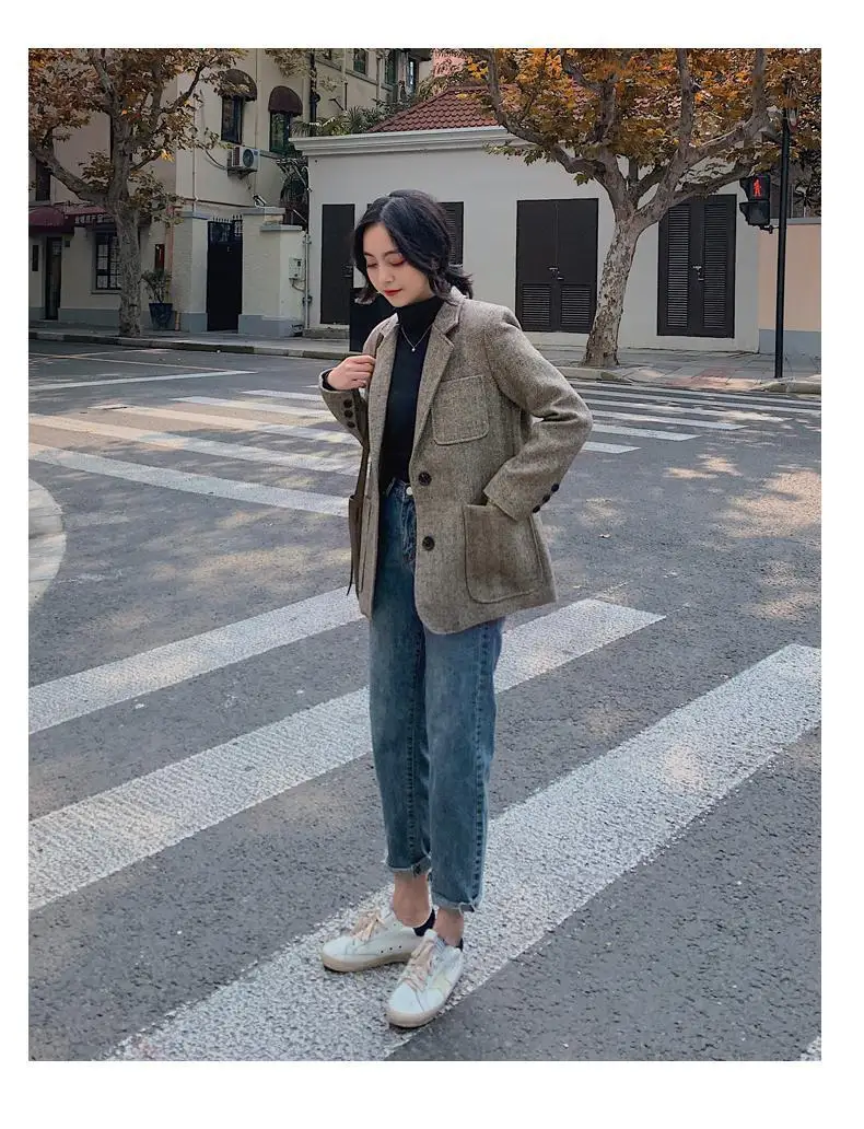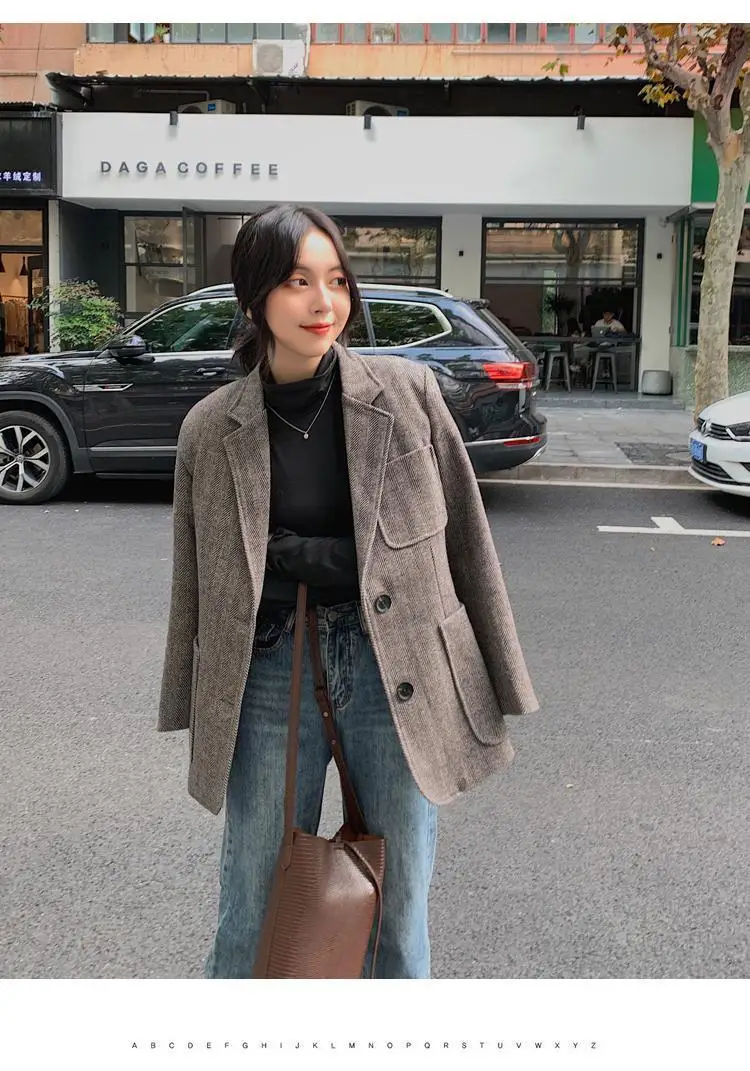 2019 Autumn Korean Blazer Women Herringbone Pattern Casual Blazers Single Breasted Office Lady Vintage Woolen Blazer CoatsBuy Now On Aliexpress