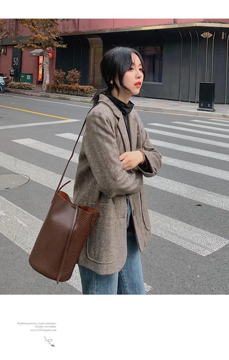 2019 Women autumn winter casual loose vintage herringbone blazer coat jacketBuy Now On Aliexpress