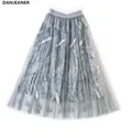 DANJEANER Summer High Waist Shining Sequin Skirts 2019 Women Elastic Waist Sexy Harajuku Tulle Skirt Streetwear Long Skirts USD 13.99