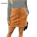 DANJEANER Elegant Women Ladies Summer Skirts High Waist Single Breasted Solid Slim A-Line Suede Leather Mini Skirts Jupe Femme USD 12.99