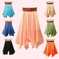 Free Shipping 2016 New Women Double Layer Chiffon Asymmetrical Retro Mid-Calf Skirt Elastic Belt Waist Skirt USD 9.29