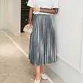 Danjeaner Spring 2019 Women Long Metallic Silver Maxi Pleated Skirt Midi Skirt High Waist Elascity Casual Party Skirt Vintage USD 9.99-10.99