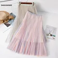 DANJEANER Women's Colorful Long Tulle Skirts Plain Pleated Skirt 2019 New Fashion Elegant Mesh Midi Skirt High Waist Woman Skirt USD 9.99