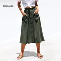 DANJEANER Women Summer Casual Loose Cotton Skirts with Two Pockets Fashion Solid Slim A-line High Waist Mid-Calf Skirts 2019 USD 12.99