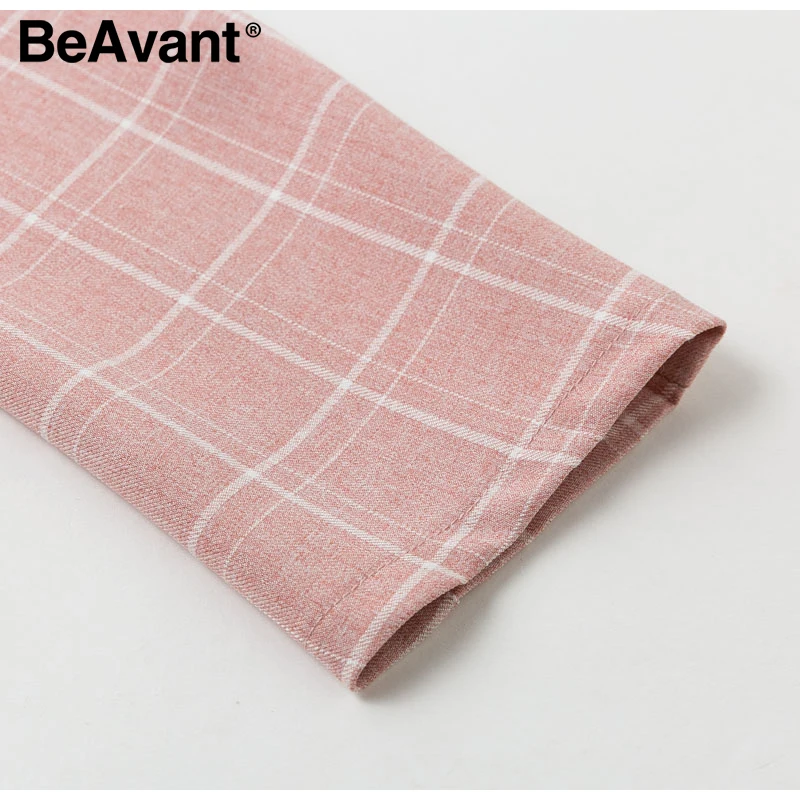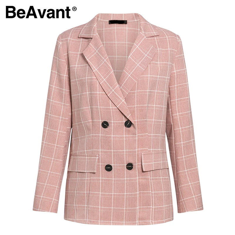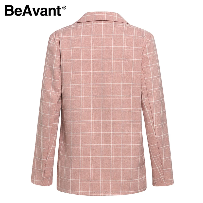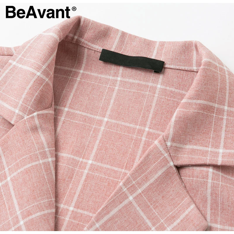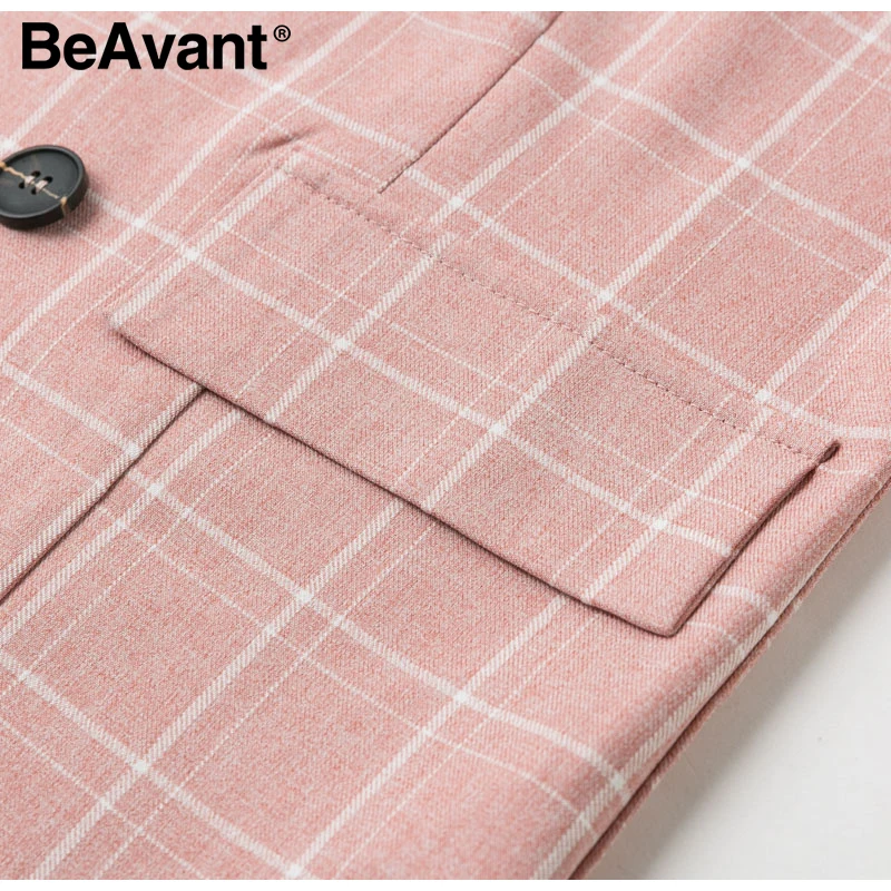 Simplee pink plaid women blazer pockets single button Long sleeve female casual coats Office ladies outerwear chic tops blazer