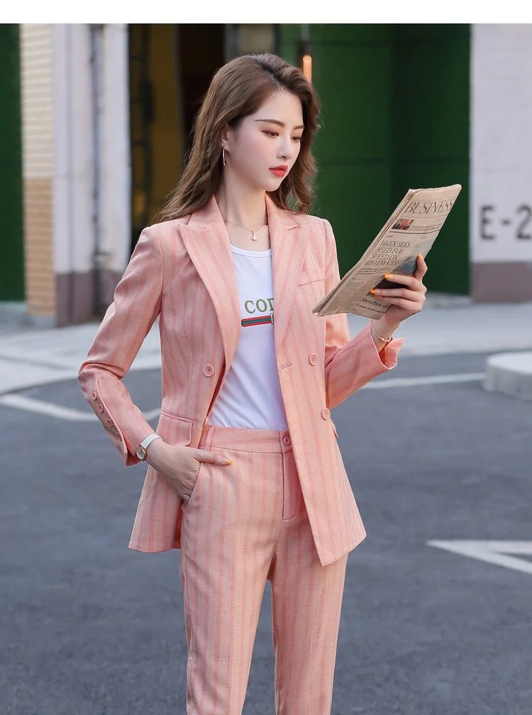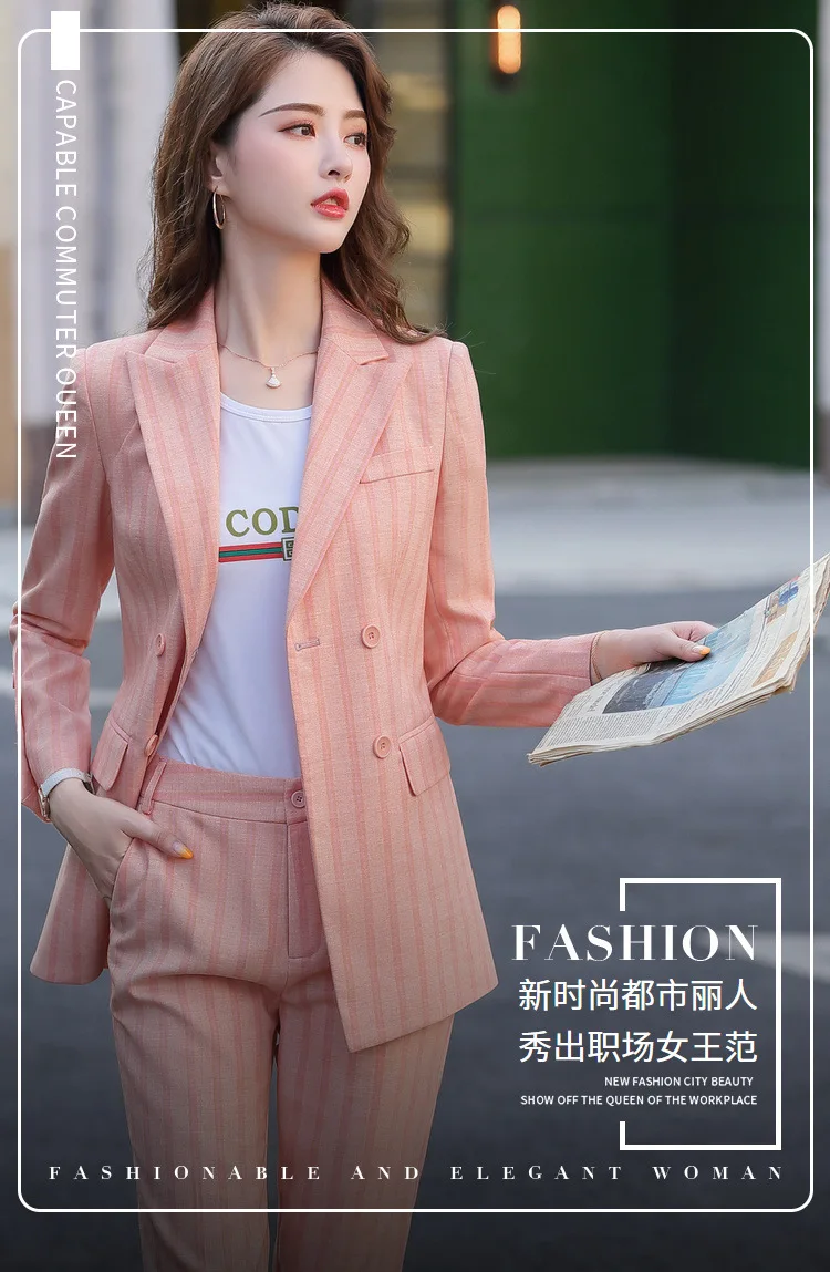 | Candy Pink Office Work Formal Pant Suit Women's Business Lady OL Uniform 2 Piece Set Blazer Trouser Jacket Suits Plus Size 5XL |