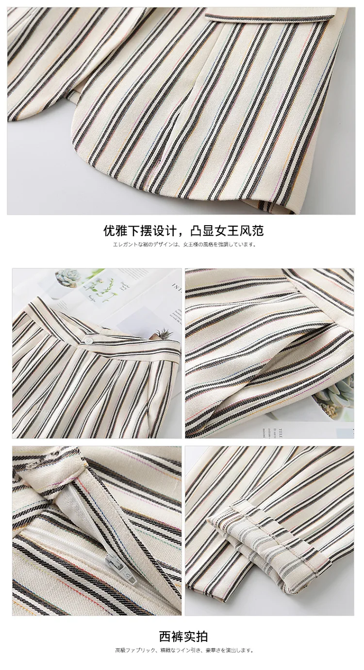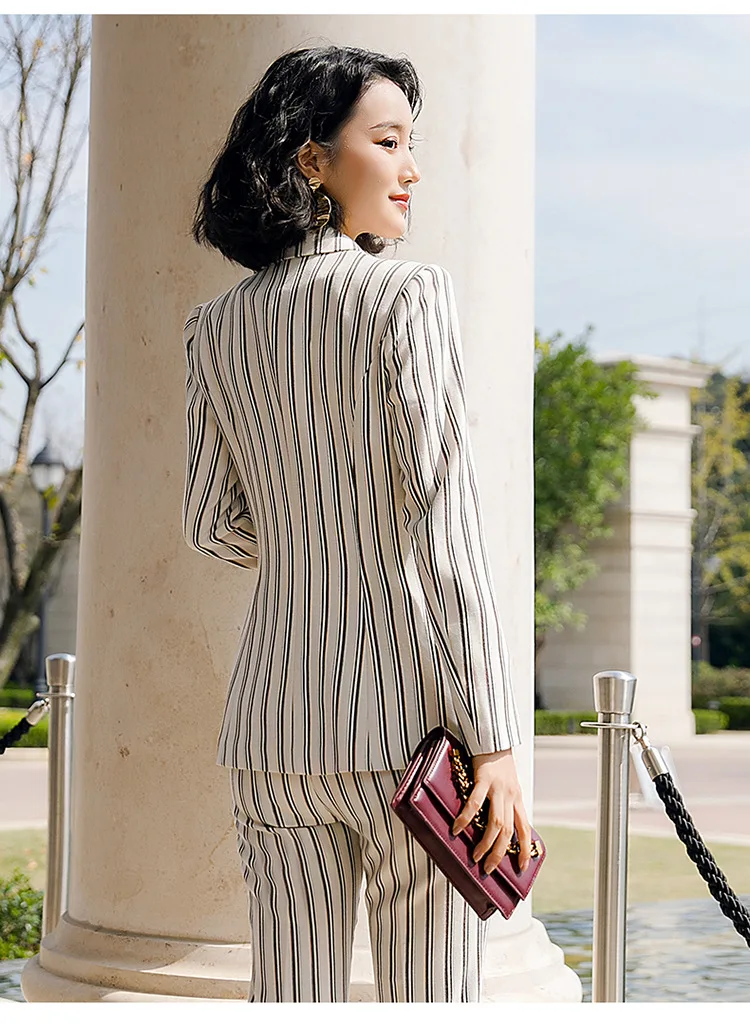 New 2020 White Female Elegant Stripes Women's Suit Set Blazer and Trouser Pant Business Uniform Clothing Office Lady Two Pieces